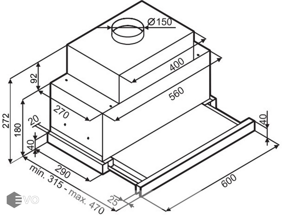 Тип вытяжки : | Встраиваемая (в шкаф) |