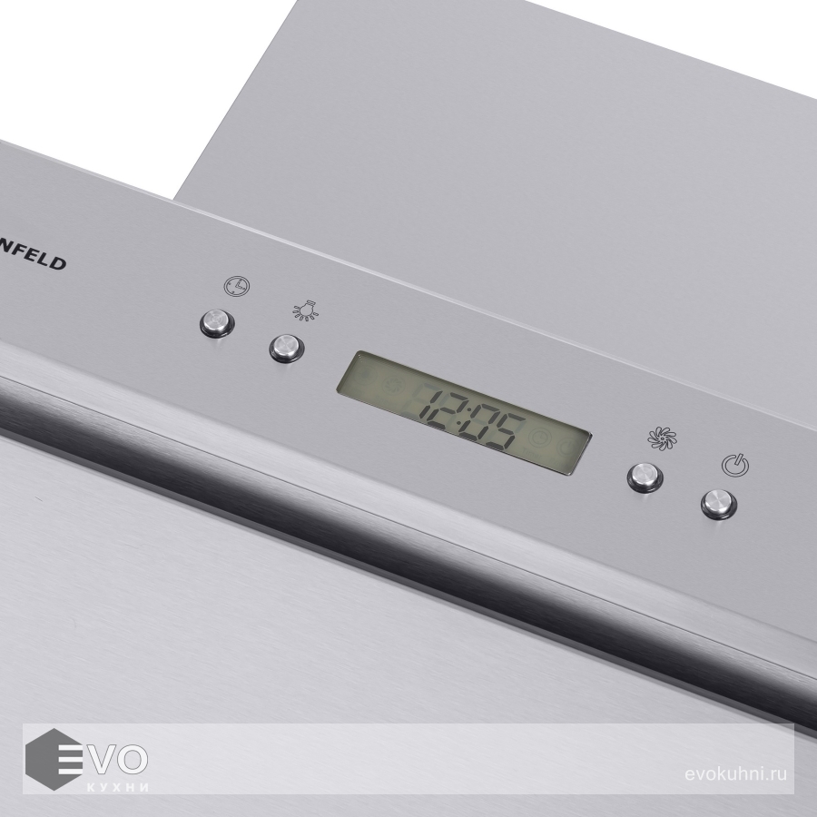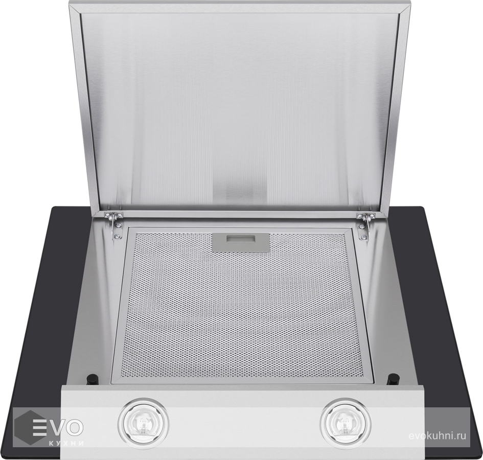 Корпус и фронтальная часть сделаны из матированной нержавеющей стали. Многослойный жироулавливающий алюминиевый фильтр, скрытый за откидной панелью, легко вынимается и полностью разбирается, что сильно упрощает его чистку. Рабочая зона увеличена за счет боковых панелей из закаленного стекла черного цвета.