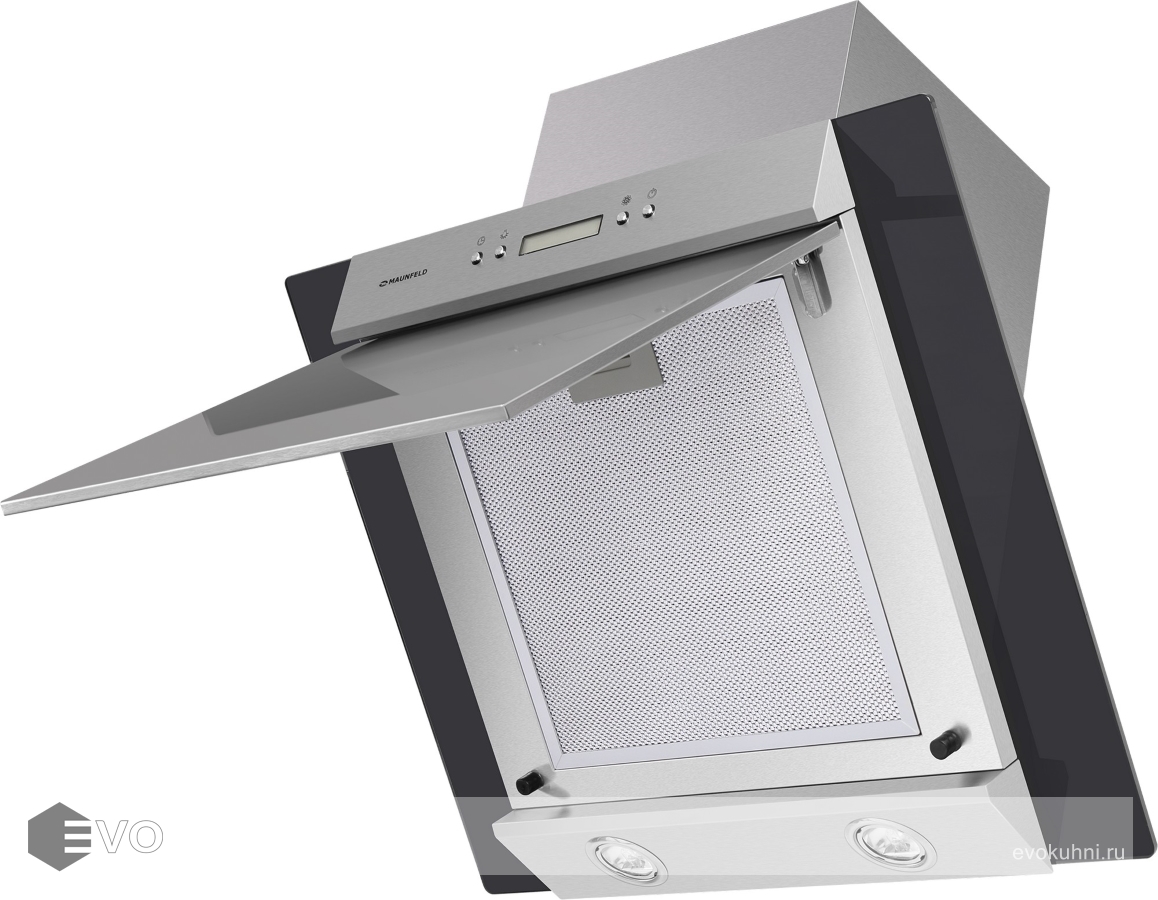 Наклонная вытяжка MAUNFELD Gloria 60 нержавеющая сталь\черное стекло - вытяжка способна эффективно работать на кухне очень большой площади (до 40 кв.м). Используется в двух режимах: отвода (при подключении к системе вентиляции) и рециркуляции (при использовании сменного угольного фильтра).