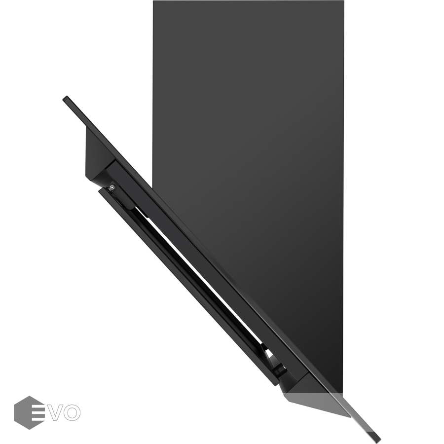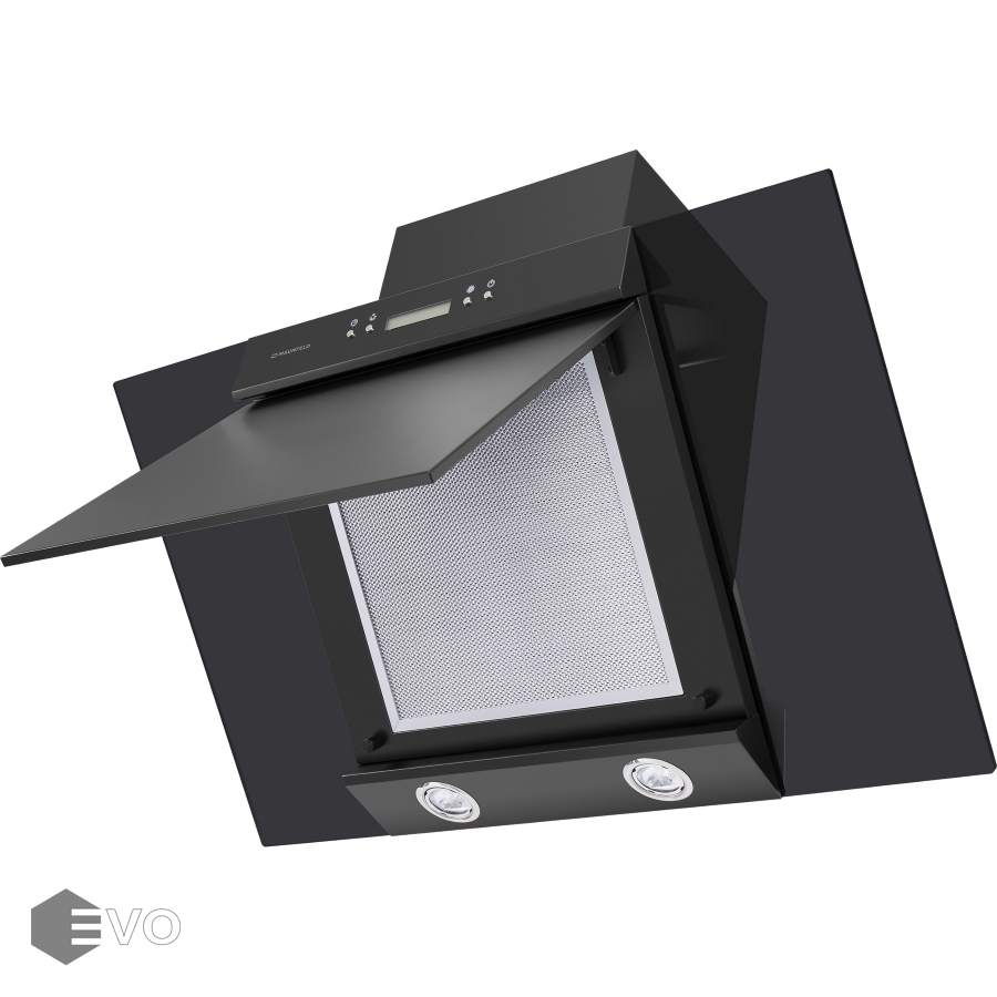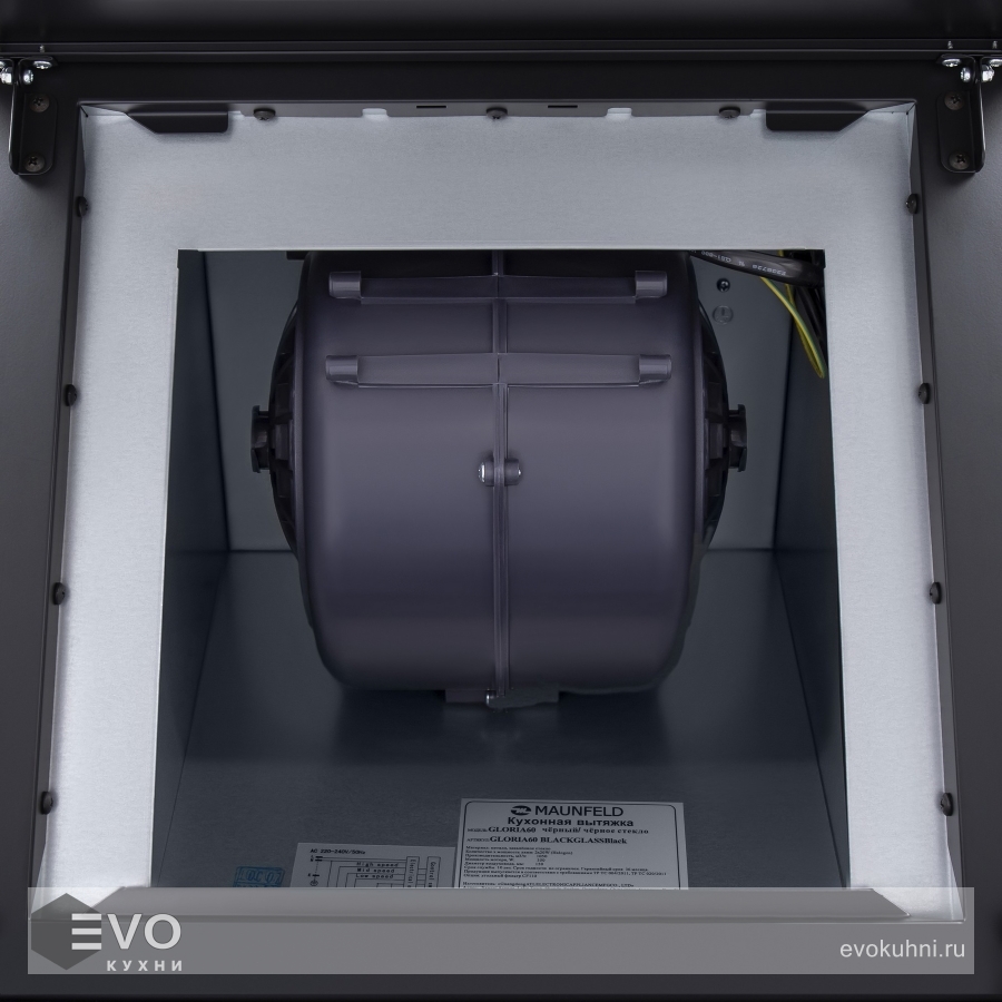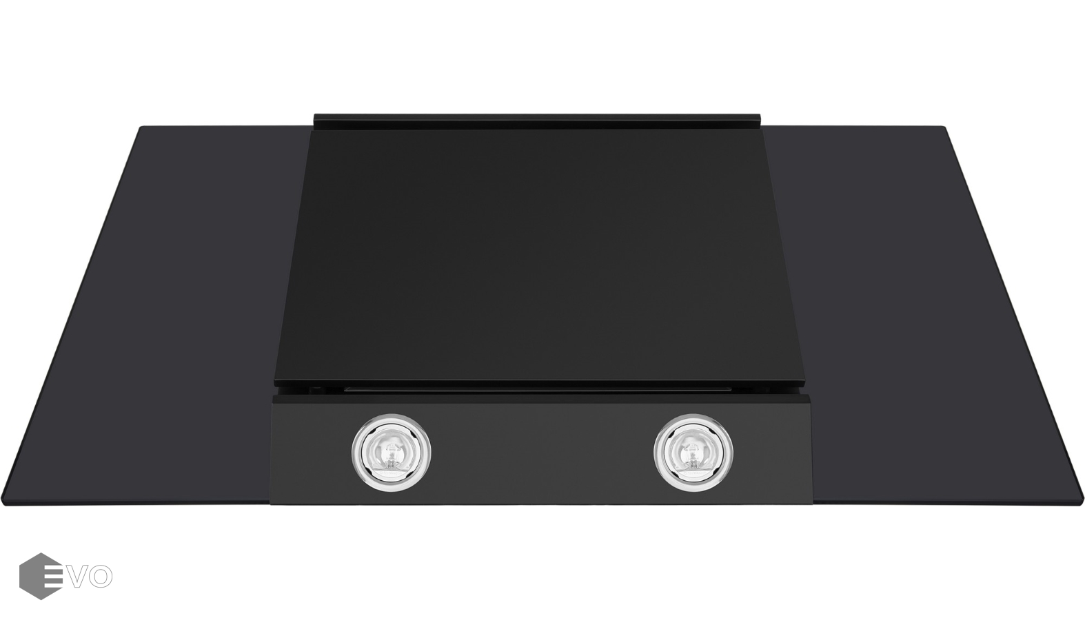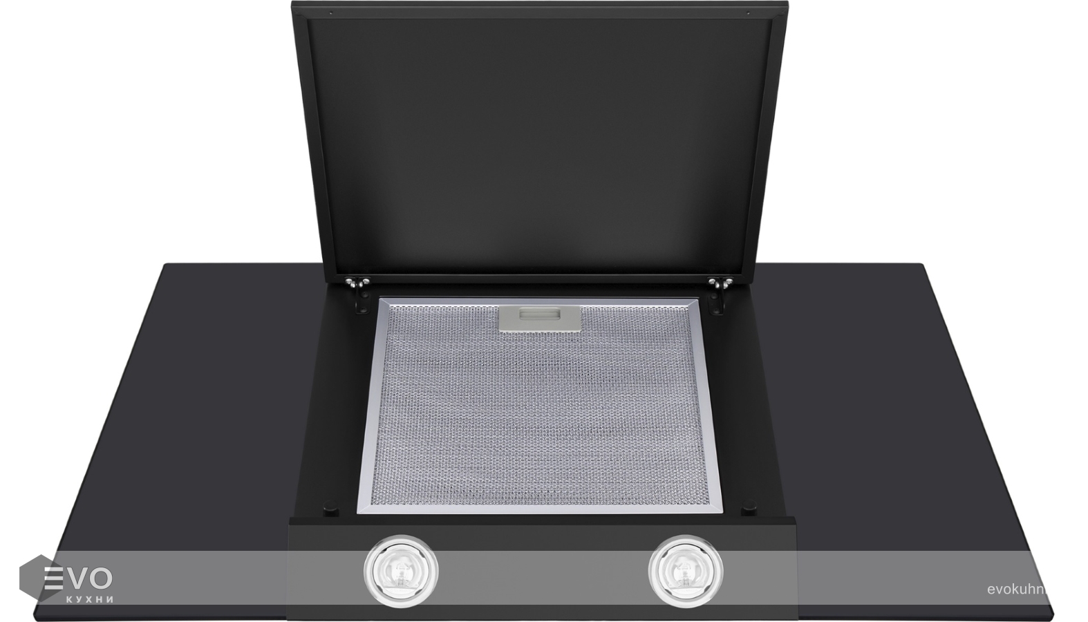 Корпус и откидная панель сделаны из матированной нержавеющей стали. Многослойный жироулавливающий алюминиевый фильтр, скрытый за откидной панелью, легко снимается и полностью разбирается, что сильно упрощает его чистку. Рабочая зона увеличена за счет боковых панелей из закаленного глянцевого стекла черного цвета.