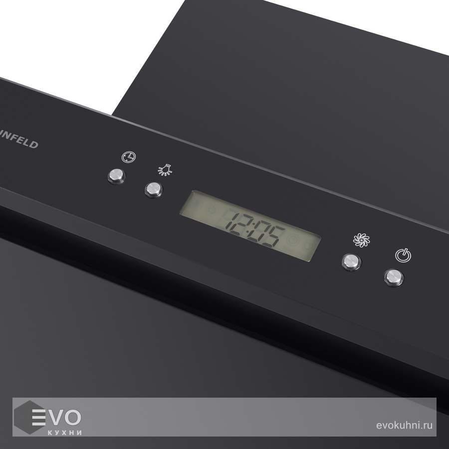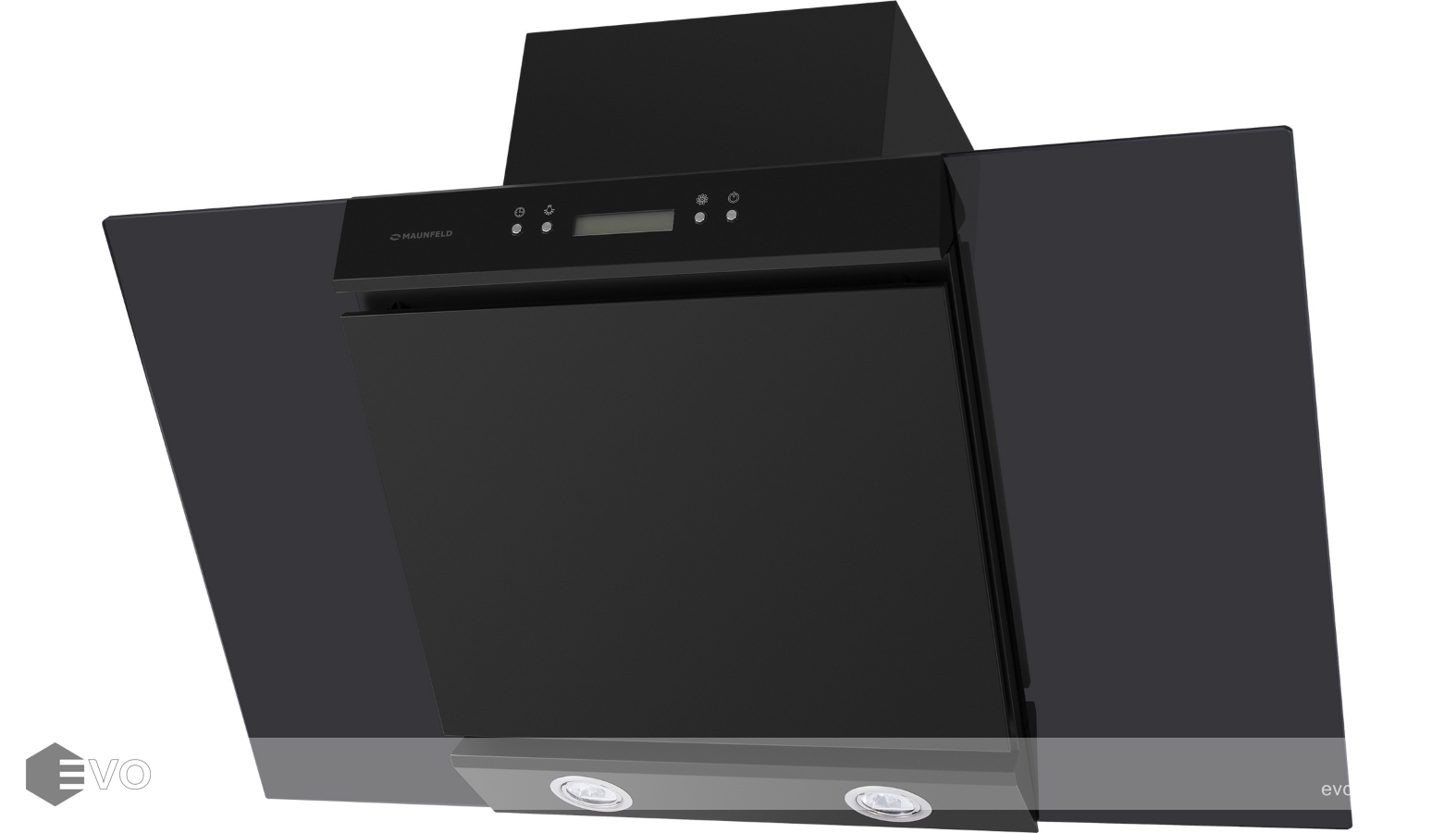 Наклонная вытяжка MAUNFELD Gloria 90 черный\черное стекло – наклонная вытяжка с увеличенной зоной захвата шириной 90 см способна эффективно работать на кухне очень большой площади (до 40 кв.м). Используется в двух режимах: отвода (при подключении к системе вентиляции) и рециркуляции (при использовании сменного угольного фильтра).