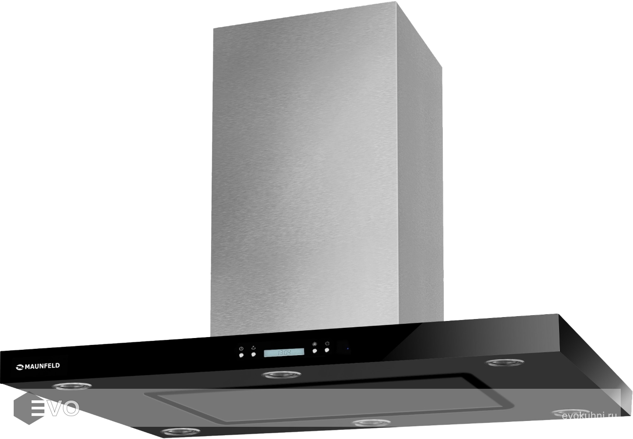 Островная Т-образная вытяжка MAUNFELD Harbour Isla 90 нержавеющая сталь\черное стекло – стильная вытяжка благодаря необычному дизайну и техническим характеристикам идеально впишется в интерьер любой современной кухни до 40 кв.м. Крепится на потолок над поверхностью плиты, поэтому может использоваться на островной кухне. Эта модель работает в двух режимах: отвода (при подключении к системе общедомовой вентиляции) и рециркуляции (требуется установка сменного угольного фильтра).