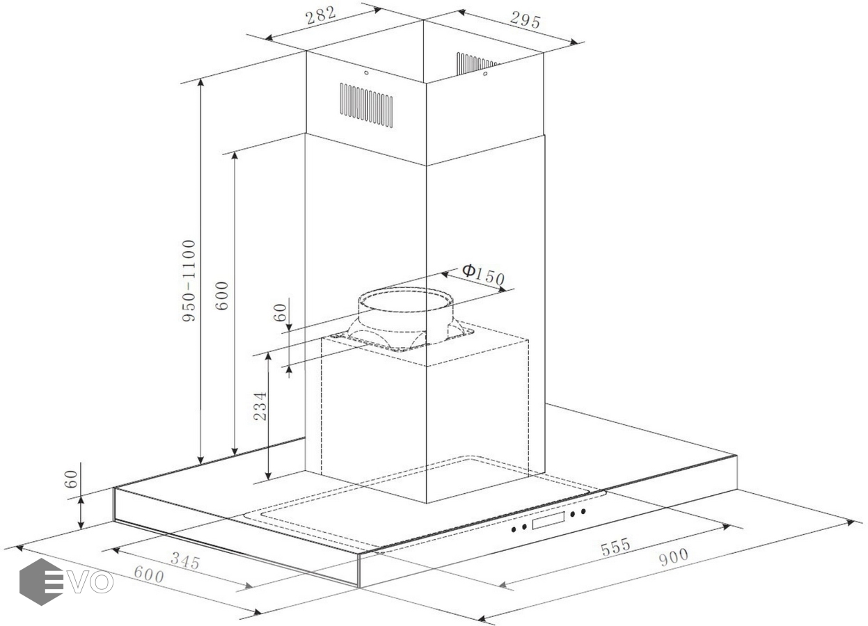 - Высота установки над электрическими варочными поверхностями, мм: 650