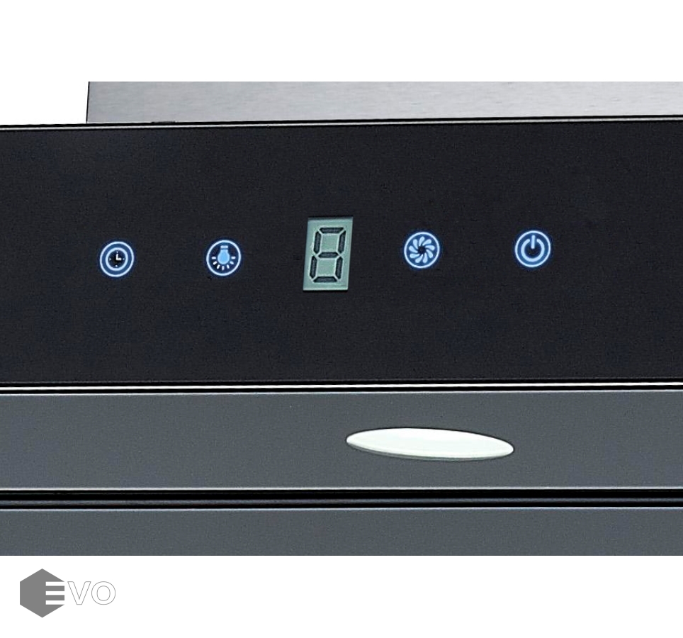 Корпус выполнен из матированной нержавеющей стали, рабочая поверхность черного цвета сделана из закаленного стекла. Откидная панель скрывает алюминиевый многослойный жироулавливающий фильтр. Он легко вынимается и полностью разбирается, что сильно упрощает чистку. Для управления вытяжкой используется сенсорная панель, с помощью которой можно установить один из 3-х скоростных режимов разной степени интенсивности, выставить таймер и включить освещение.