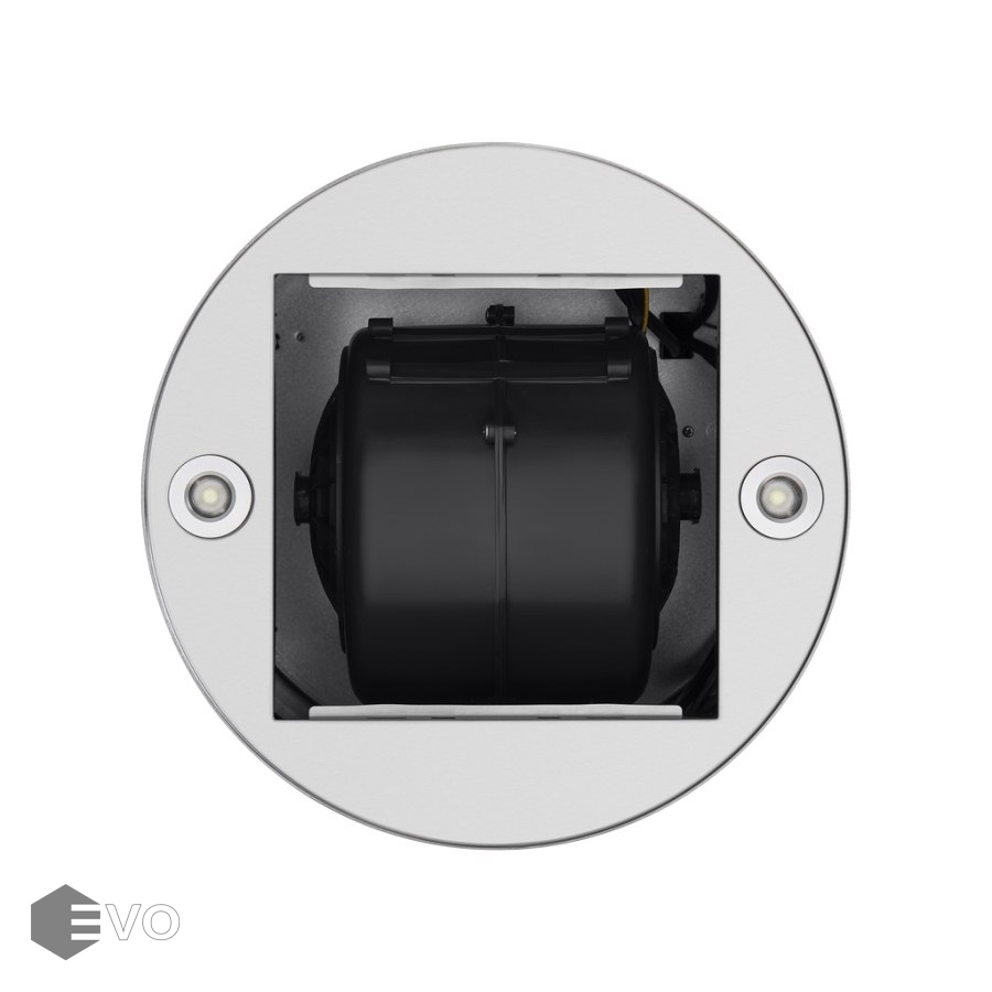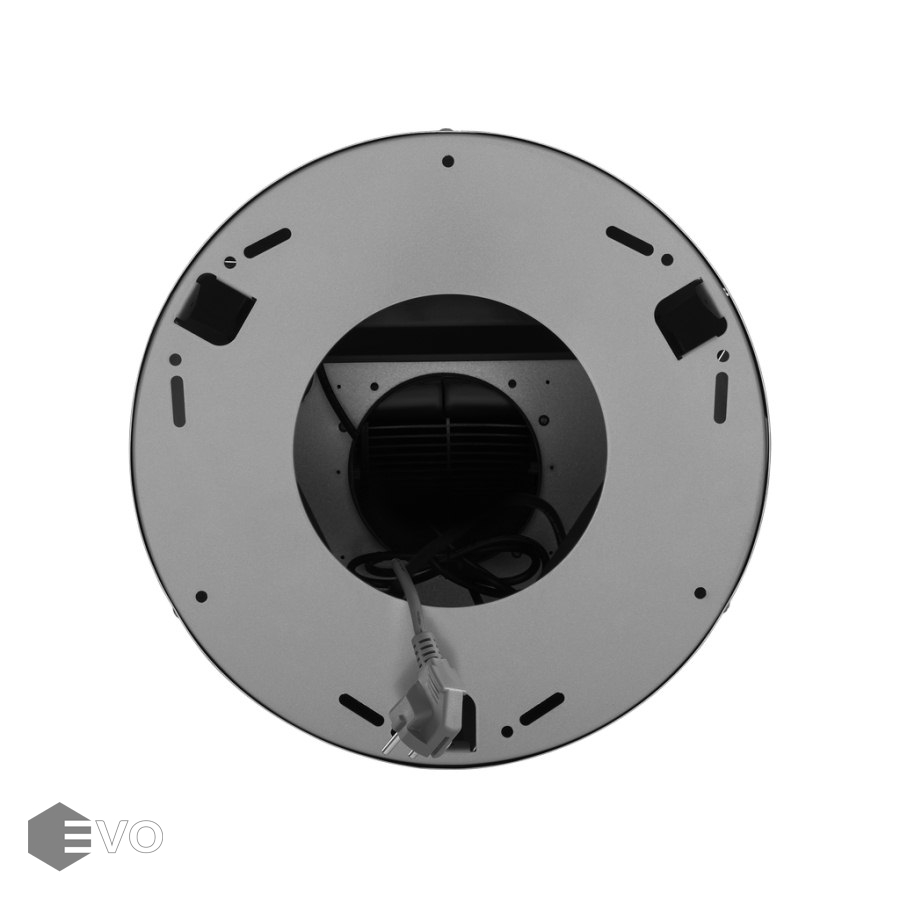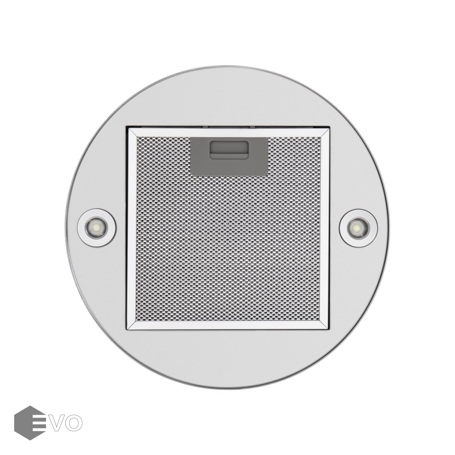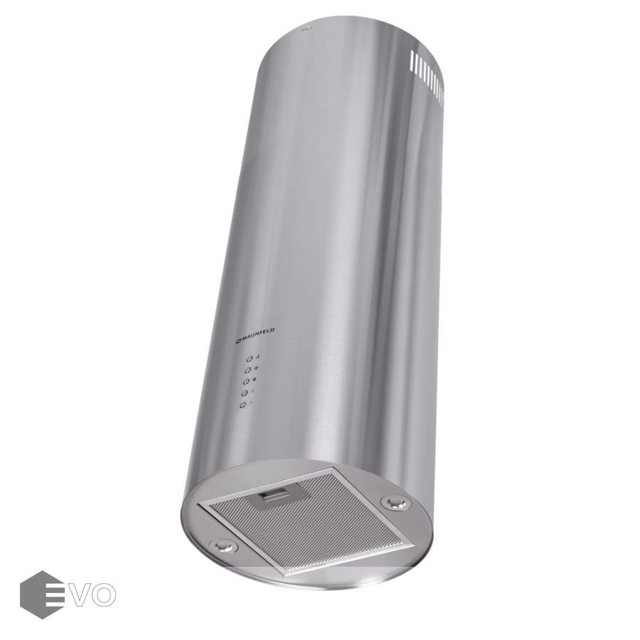 Корпус цилиндрической формы, выполненный из нержавеющей стали с термостойким покрытием белого цвета, крепится на потолок над поверхностью плиты. Алюминиевый многослойный жироулавливающий фильтр находится в нижней части вытяжки.