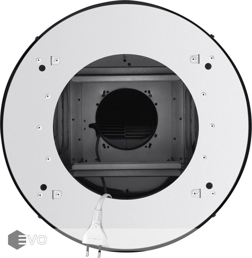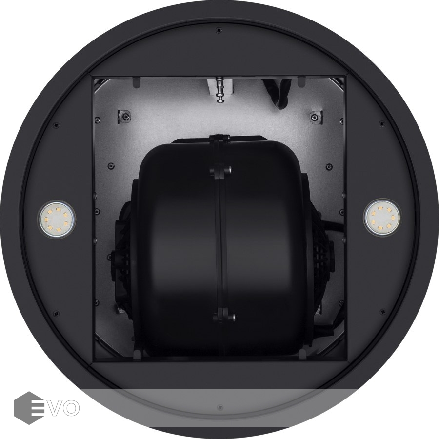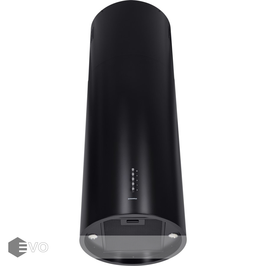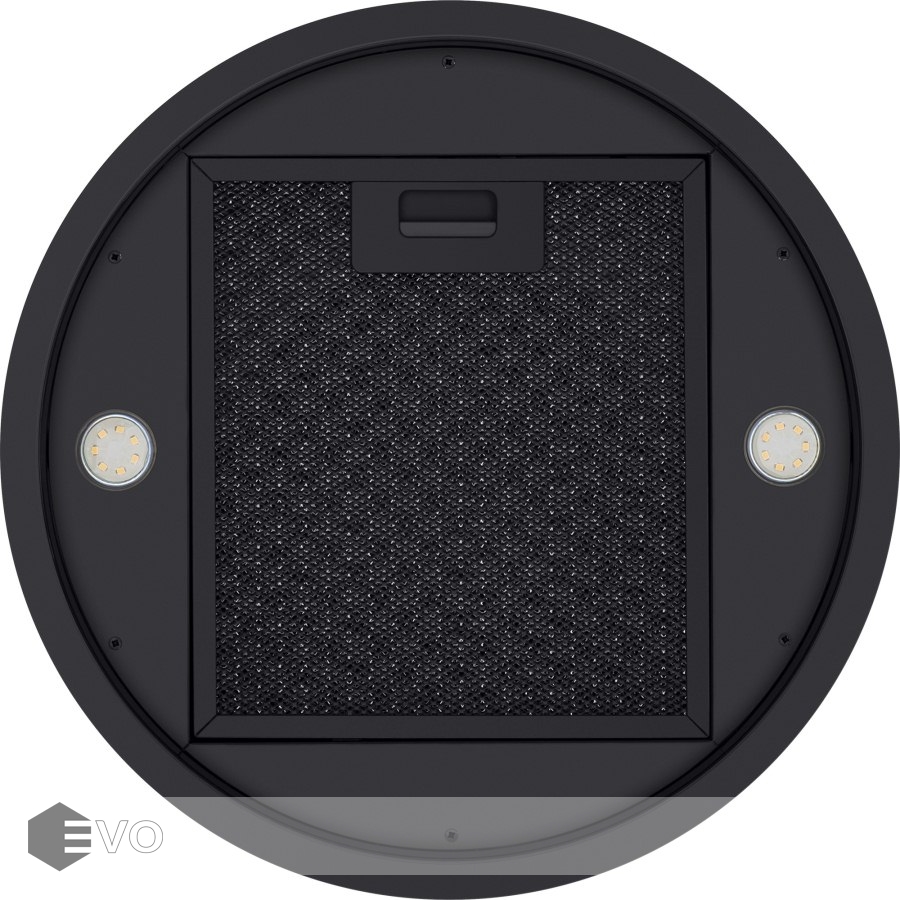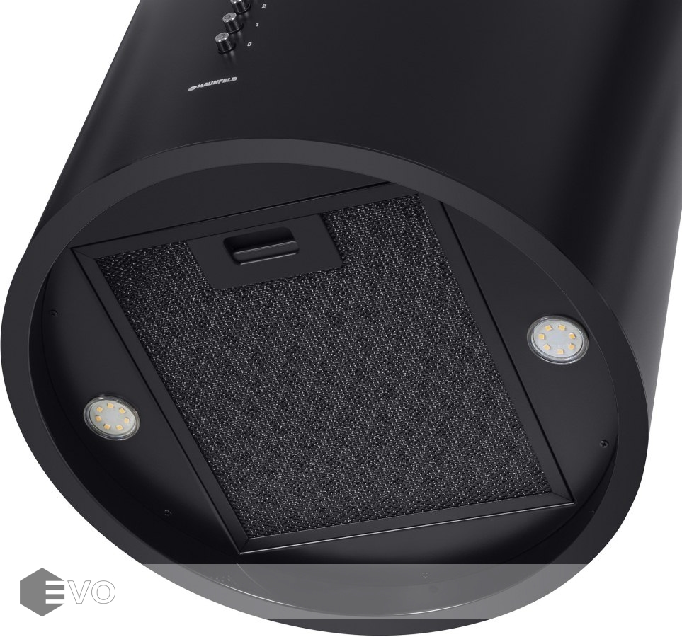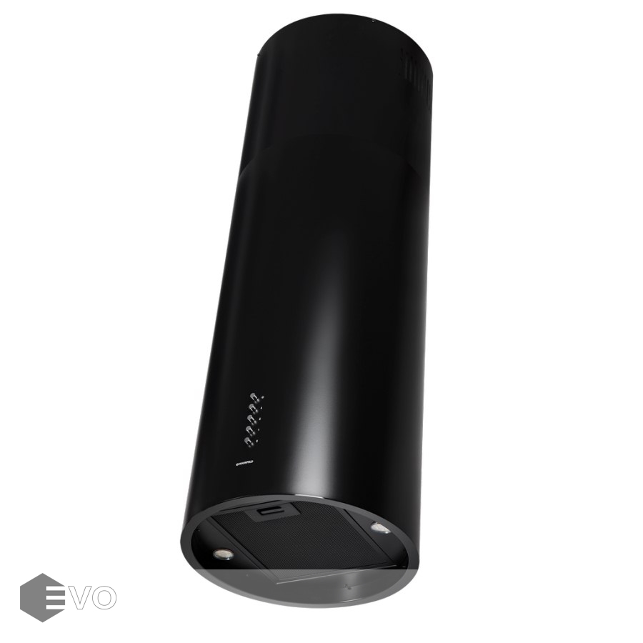 Корпус цилиндрической формы, выполненный из нержавеющей стали с термостойким покрытием, монтируется на потолок над варочной поверхностью. В нижнем торце вытяжки расположен специальный многослойный жироулавливающий фильтр, который легко вынимается и полностью разбирается для чистки.