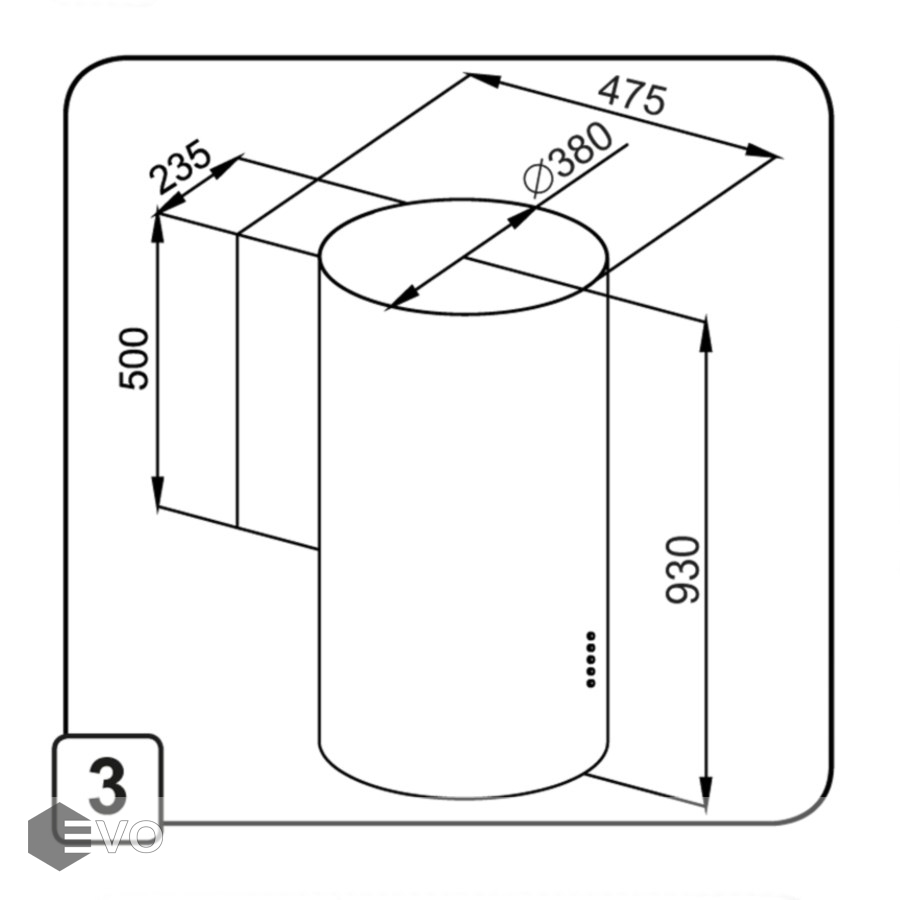 В модели реализованы две возможности эксплуатации: режим прямого отвода загрязненного воздуха в вентиляционную шахту или режим рециркуляции воздушных масс и их очистки с помощью сменных угольных фильтров. Удобное кнопочное управление позволяет установить один из 3-х режимов скорости вентилятора и включить 2 светодиодных элемента (2,2 Вт), расположенных по бокам фильтра.