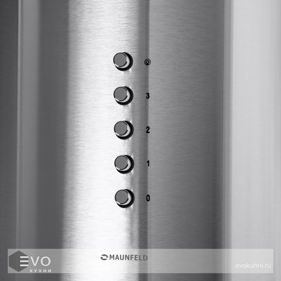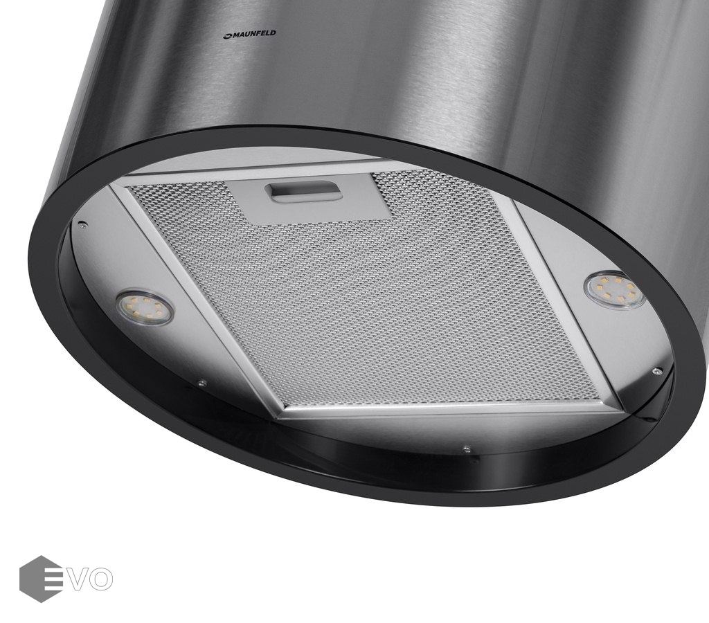 Каминная вытяжка MAUNFELD Lee Side C 39 нержавеющая сталь – вытяжка цилиндрической формы, купольного типа, шириной 38 см с настенным креплением, вытяжка благодаря интересному исполнению подчеркнет неповторимый дизайн вашей большой кухни (до 40 кв.м).