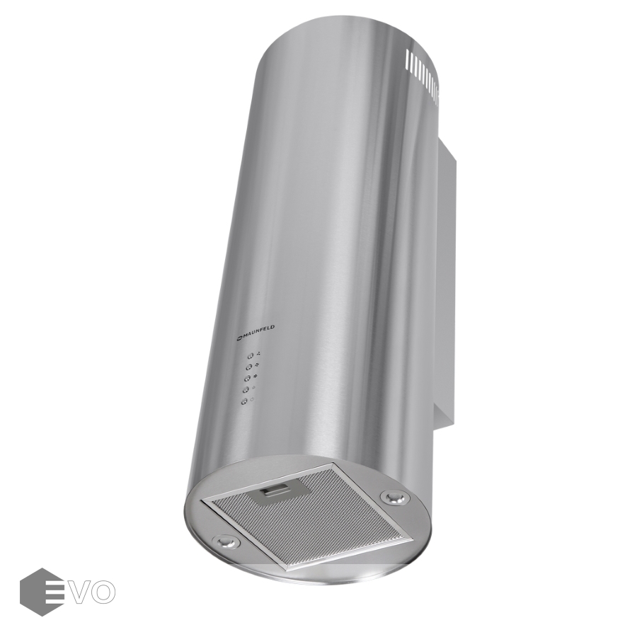 Каминная вытяжка MAUNFELD Lee Wall 35 нержавеющая сталь – вытяжка цилиндрической формы, купольного типа, шириной 35 см с настенным креплением, вытяжка благодаря интересному исполнению подчеркнет неповторимый дизайн вашей большой кухни (до 40 кв.м). Корпус цилиндрической формы, выполненный из нержавеющей стали с термостойким покрытием, устанавливается на стену над поверхностью плиты.