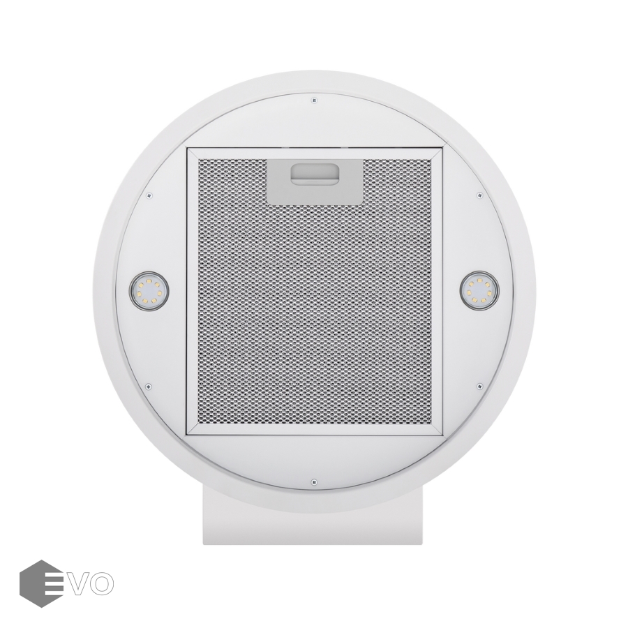 Корпус цилиндрической формы, сделанный из нержавеющей стали с термостойким покрытием, монтируется на стену над варочной поверхностью. Специальный многослойный жироулавливающий алюминиевый фильтр, расположенный в нижнем торце, легко снимается и полностью разбирается, что сильно упрощает его чистку.