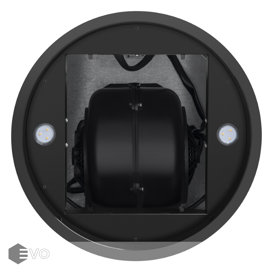 Корпус цилиндрической формы, сделанный из нержавеющей стали с термостойким покрытием, монтируется на стену над варочной поверхностью. Специальный многослойный жироулавливающий алюминиевый фильтр, расположенный в нижнем торце, легко снимается и полностью разбирается, что сильно упрощает его чистку.