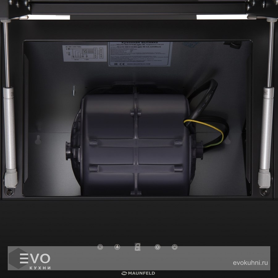 Наклонная вытяжка MAUNFELD Manchester Light 90 черный – вытяжка шириной 90 см идеально подойдет для кухни (до 40 кв.м). Работает в двух режимах – отвода (при подключении к системе вентиляции) и рециркуляции (при использовании сменного угольного фильтра). Сенсорное управление с дисплеем расположено на нижней панели. Можно включить: одну из 3-х скоростей, таймер на 9 мин, освещение, состоящее из 2-х светодиодных LED-элементов по 2 Вт.