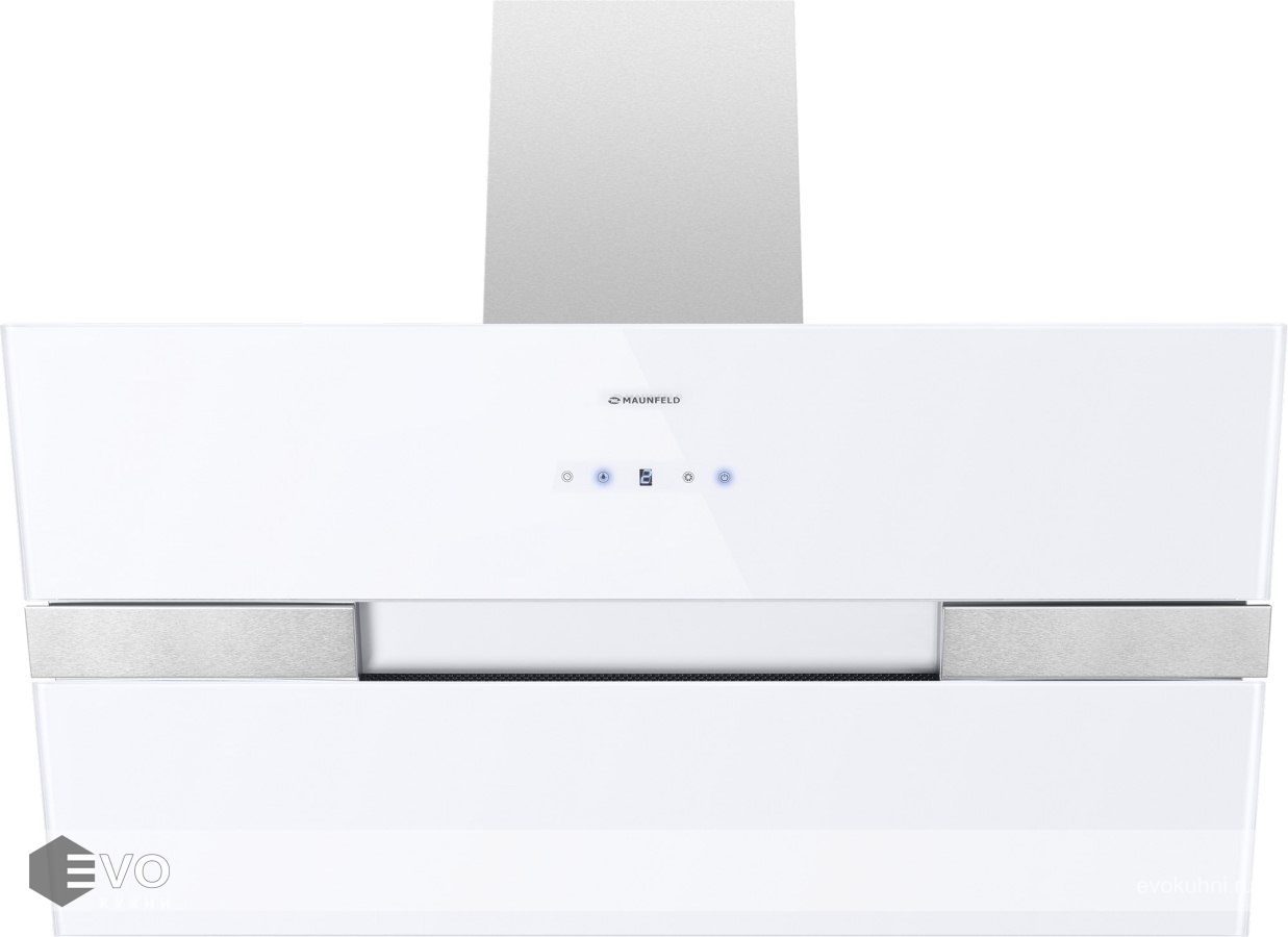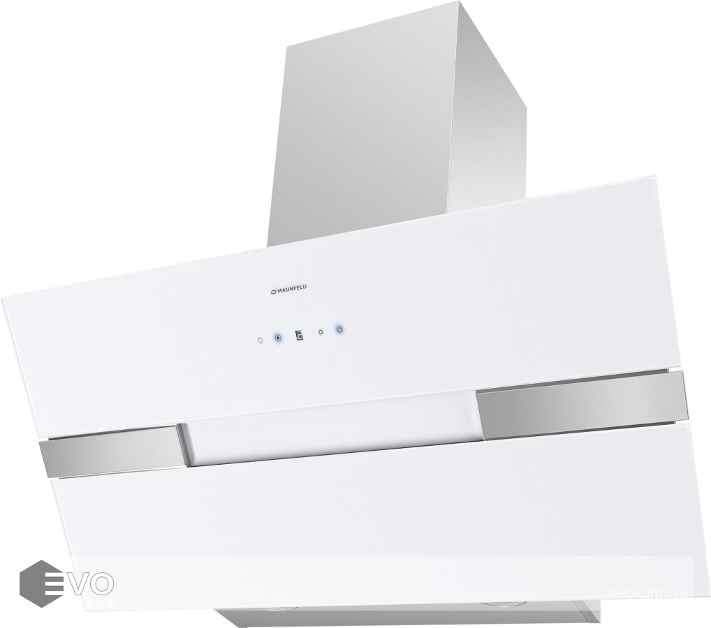 Наклонная вытяжка MAUNFELD Mersey 90 белый\вставка сатин – кухонная вытяжка шириной 90 см монтируется на стену над варочной панелью. Оптимальное решение для кухни площадью до 40 кв.м. Может использоваться для отвода воздуха из помещения при подключении к системе домовой вентиляции или очищать воздух с помощью сменного угольного фильтра. Сенсорное управление с дисплеем расположено в верхней части фасада. Вы можете включить: одну из 3-х скоростей вентилятора, таймер на 9 мин, подсветку, состоящую из 2-х светодиодных элементов по 2 Вт.