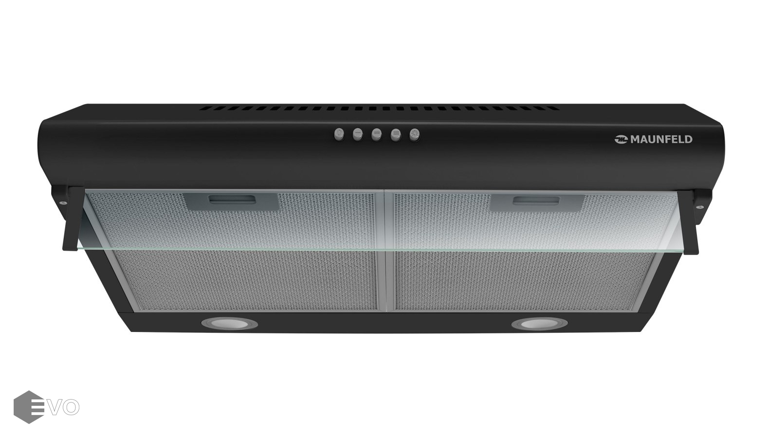 Козырьковая подвесная вытяжка MAUNFELD MP-1 60 черный – подвесная кухонная вытяжка шириной 60 см со стеклянным козырьком, подойдет для небольшой кухни (до 15 кв. м). Может использоваться для отвода воздуха из помещения при подключении к системе домовой вентиляции или очищать воздух с помощью сменного угольного фильтра. Кнопочное управление, расположенное на торце вытяжки, позволяет выбрать одну из 3-х скоростей работы вентилятора и включить освещение.