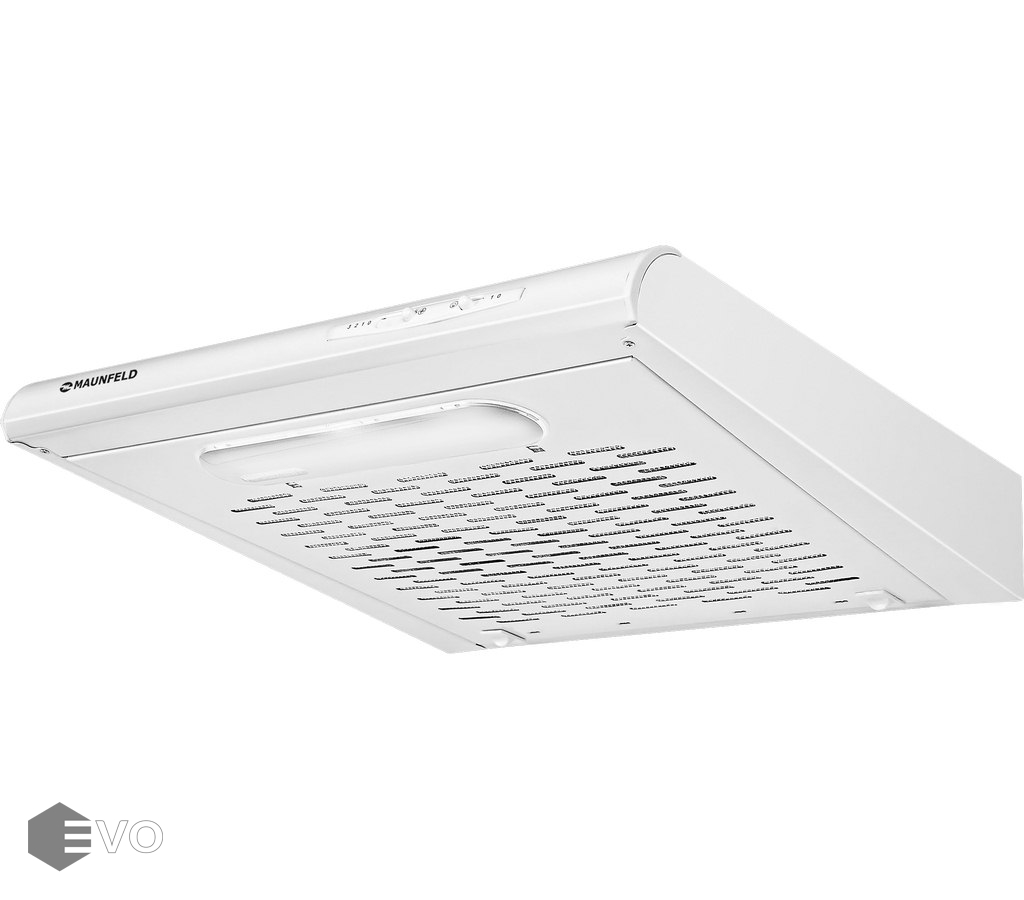 Козырьковая подвесная вытяжка MAUNFELD MPA 50 белый – подвесная кухонная вытяжка шириной 50 см, подойдет для небольшой кухни (до 12 кв. м). Может использоваться для отвода воздуха из помещения при подключении к системе домовой вентиляции или очищать воздух с помощью сменного угольного фильтра. Управление работой с помощью ползункового переключателя расположенного на торце вытяжки, позволяет выбрать одну из 3-х скоростей работы вентилятора и включить освещение.
