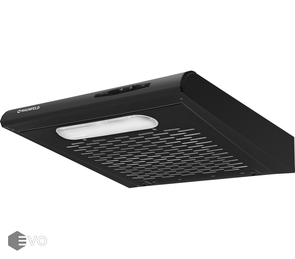 Козырьковая подвесная вытяжка MAUNFELD MPA 60 черный – подвесная кухонная вытяжка шириной 60 см, подойдет для небольшой кухни (до 12 кв. м). Может использоваться для отвода воздуха из помещения при подключении к системе домовой вентиляции или очищать воздух с помощью сменного угольного фильтра. Управление работой с помощью ползункового переключателя расположенного на торце вытяжки, позволяет выбрать одну из 3-х скоростей работы вентилятора и включить освещение.