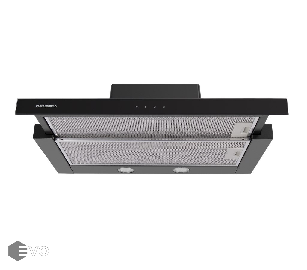 Выдвижная вытяжка MAUNFELD Ouse Touch 60 черный – телескопическая кухонная вытяжка с шириной 60 см благодаря выдвижному козырьку может эффективно очищать загрязненный воздух на в кухне площади до 30 кв.м. Модель встраивается в навесной шкаф над поверхностью плиты. Работает в 2-х режимах – отвода (при подключении к системе вентиляции) и рециркуляции (при использовании сменного угольного фильтра).