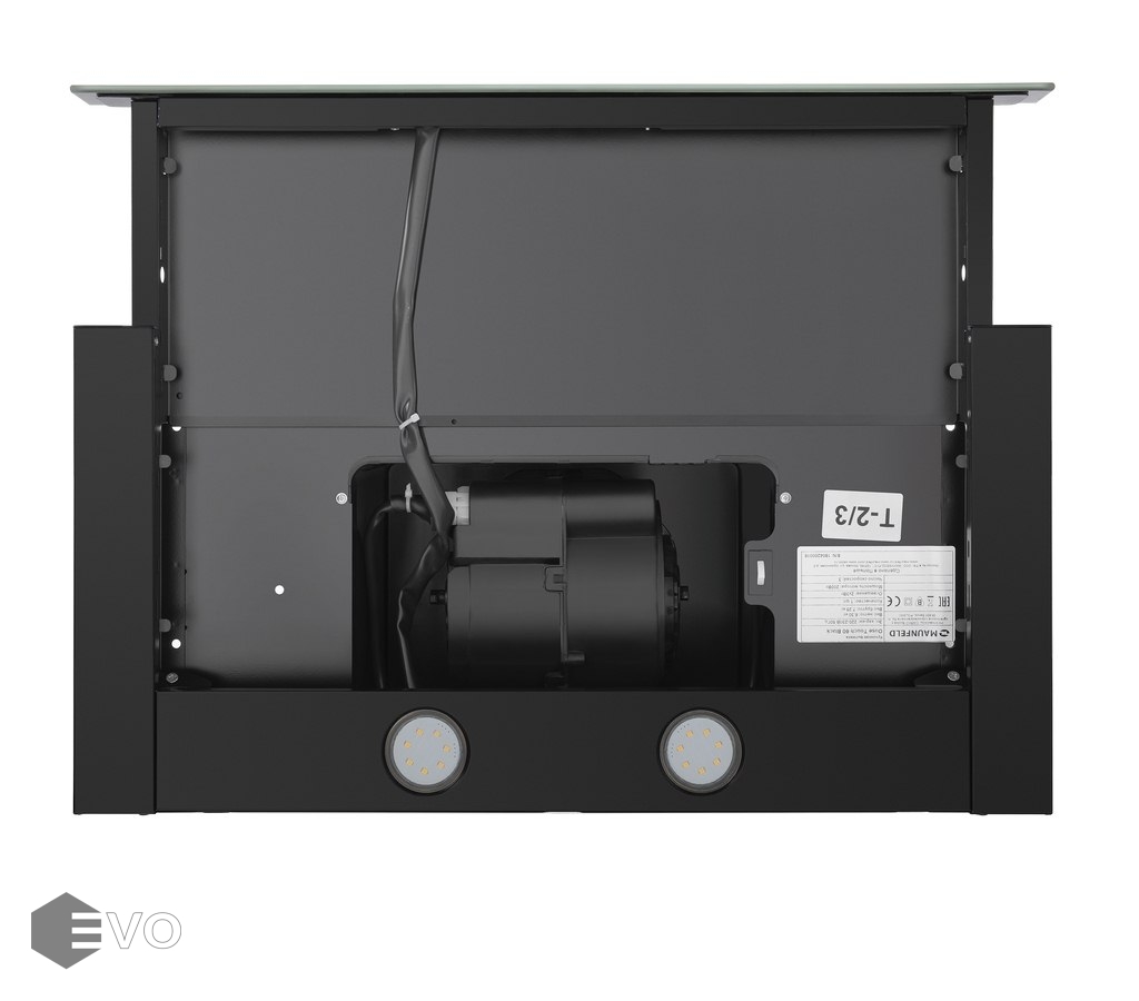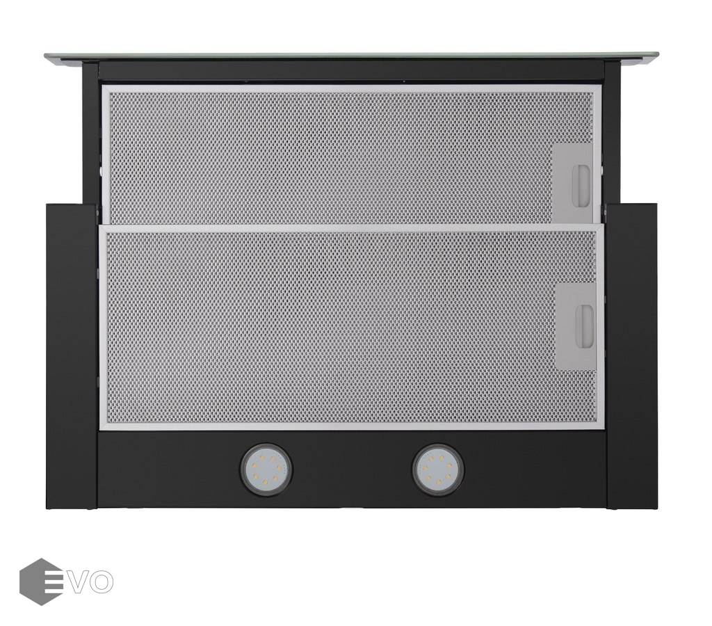 Фасад выдвижной панели выполнен из закаленного глянцевого стекла, на основной рабочей и выдвижной панелях находятся 2 многослойных жироулавливающих фильтра, которые легко вынимаются, что сильно упрощает чистку. Корпус сделан из нержавеющей стали. Дисплей сенсорного управления находится по центру фасадной панели. Вы можете выбрать одну из 3-х скоростей работы вентилятора и включить освещение.