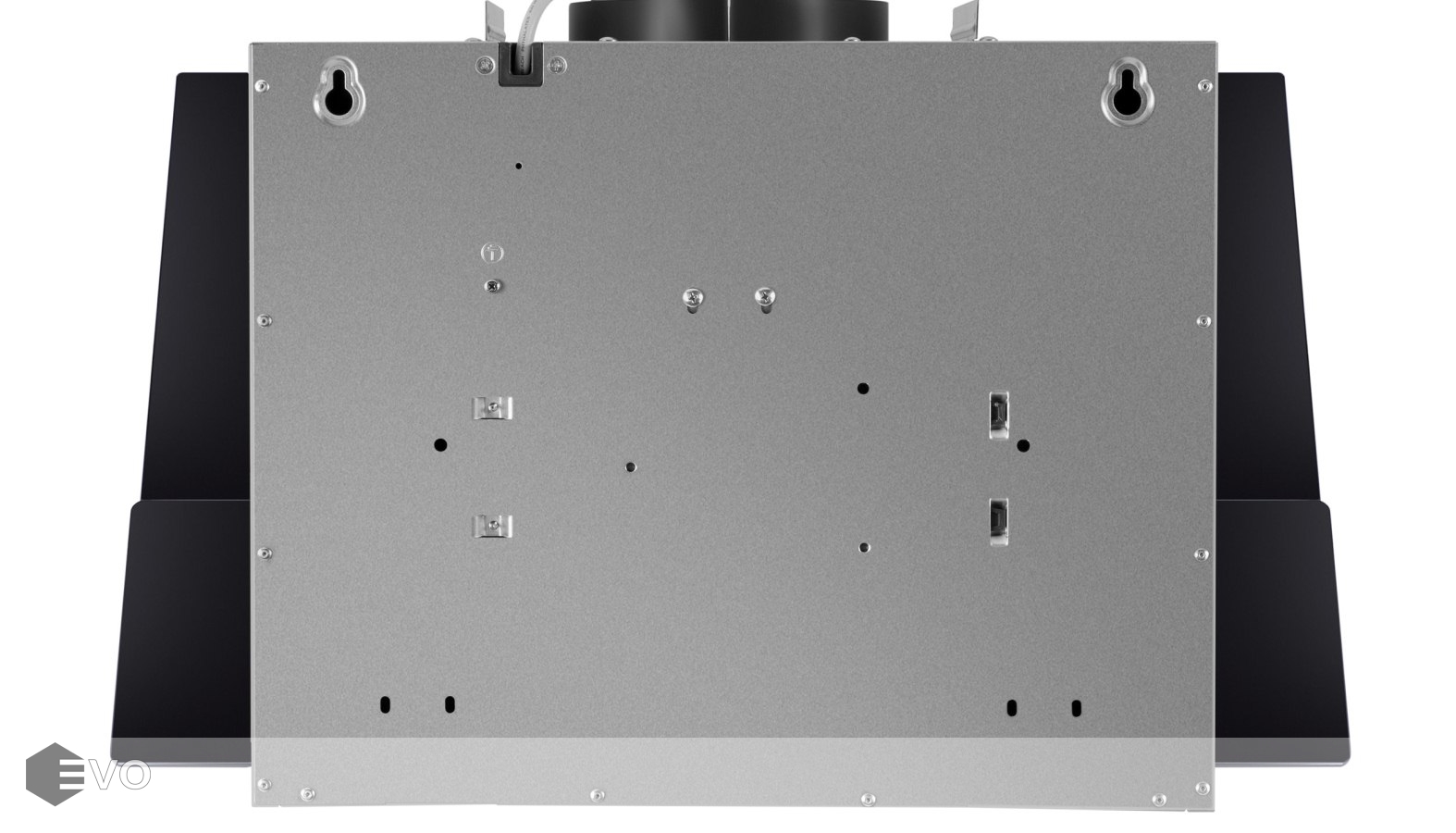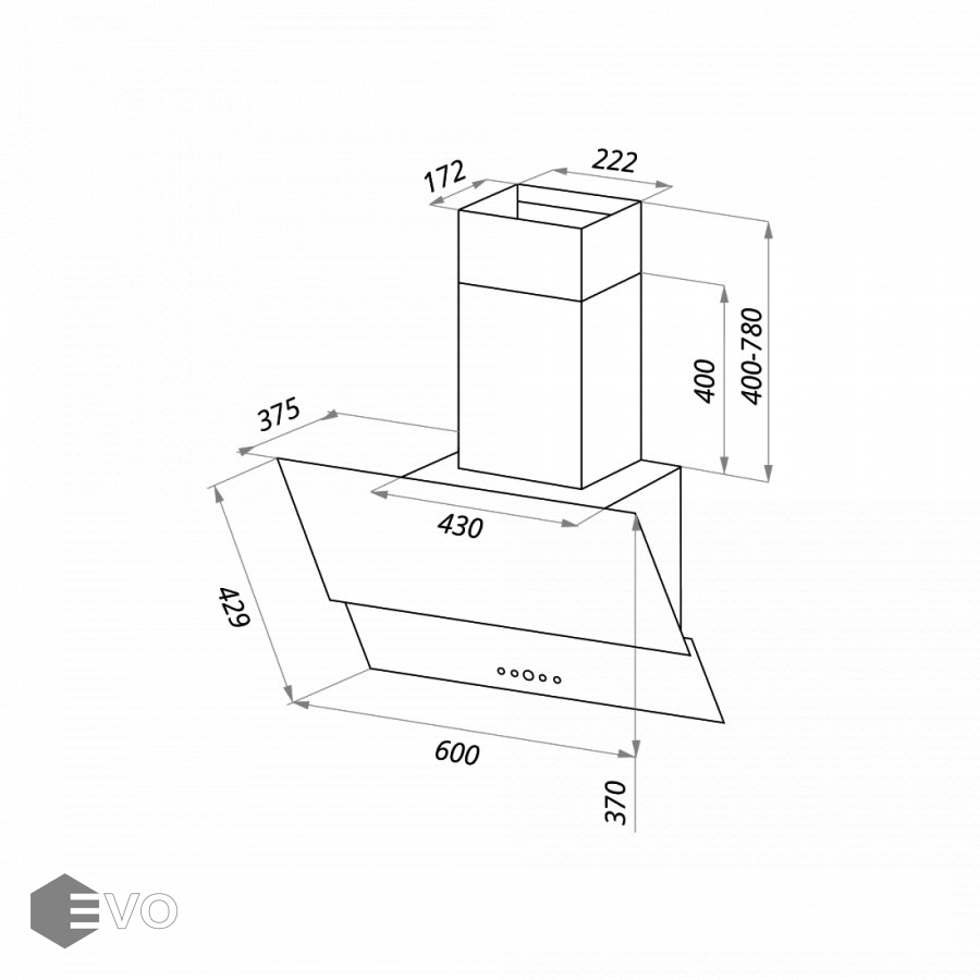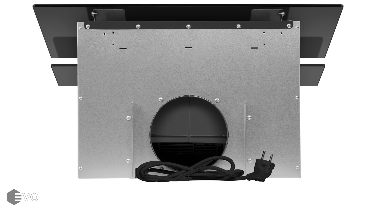 Корпус, выполненный из нержавеющей стали с покрытием черного цвета, эффектно дополняет фасад из 2-х закаленных стеклянных пластин. За верхней откидной пластиной скрыт легко снимающийся жироулавливающий алюминиевый фильтр. В модели реализован периметрический принцип втягивания загрязненного воздуха. Сенсорное управление с дисплеем располагается в нижней части фасада. Можно выбрать одну из 3-х скоростей (две основные и одна экстренная для быстрого очищения воздуха), активировать таймер отключения вытяжки на 9 мин и включить свет (2 мощных светодиодных элемента по 2 Вт).