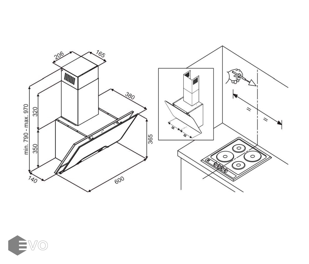 - Высота установки над газовыми варочными поверхностями, мм: 650