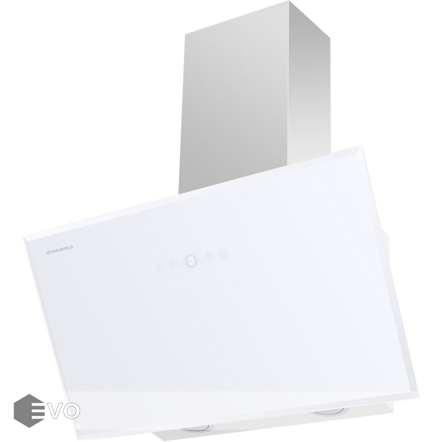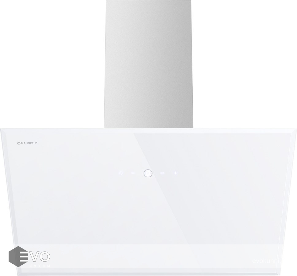 Наклонная вытяжка MAUNFELD Topaz 60 белый – вытяжка шириной 60 см, прекрасный выбор для кухни (до 20 кв.м), монтируется на стену над поверхностью плиты и может работать в двух режимах: отвода (при подключении к системе вентиляции) и рециркуляции (при использовании сменного угольного фильтра). Сенсорное управление с дисплеем расположено на фасаде. Можно включить: одну из 3-х скоростей – две основные и одна экстренную (для быстрого очищения воздуха), таймер (на 9 мин), свет (2 светодиодных элемента по 1,5 Вт).