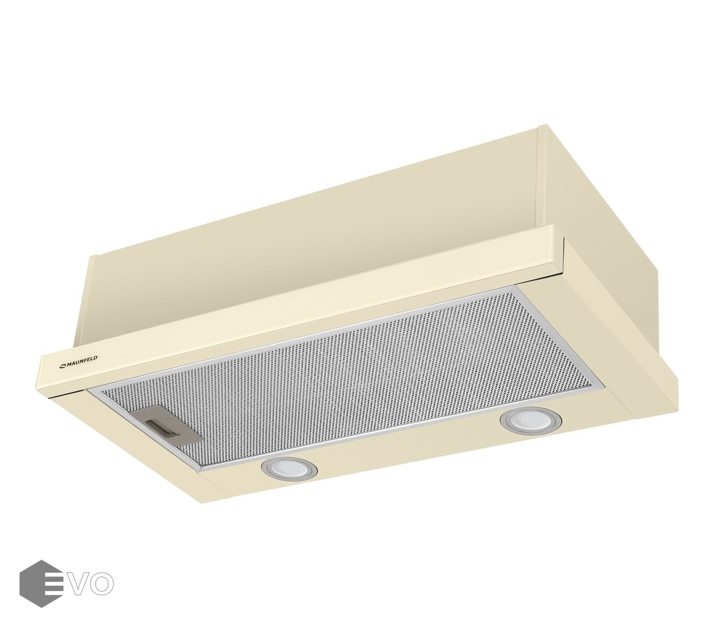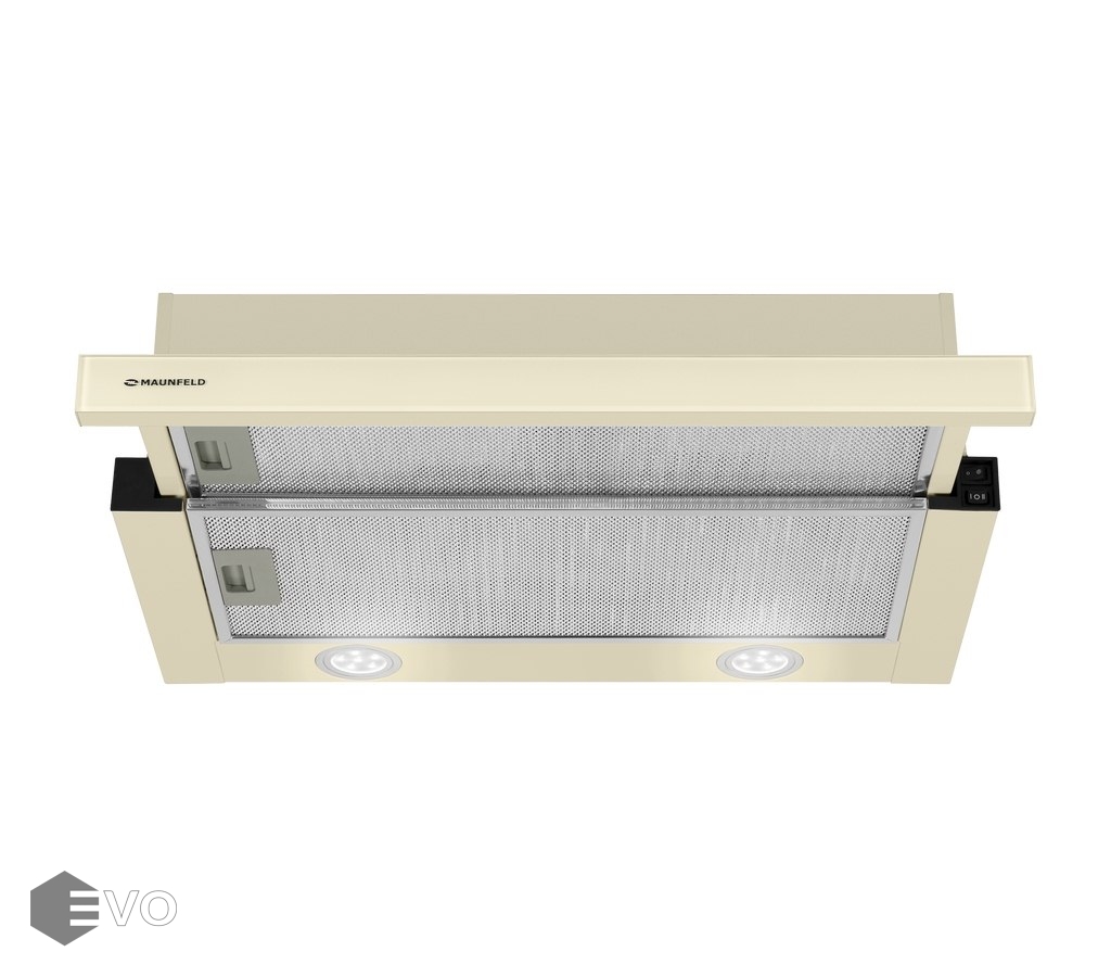 Выдвижная вытяжка MAUNFELD VS Fast Glass 60 бежевый – телескопическая кухонная вытяжка с шириной 60 см благодаря выдвижному козырьку может эффективно очищать загрязненный воздух на кухне до 30 кв.м. Модель встраивается в навесной шкаф над поверхностью плиты. Работает в 2-х режимах – отвода (при подключении к системе вентиляции) и рециркуляции (при использовании сменного угольного фильтра).