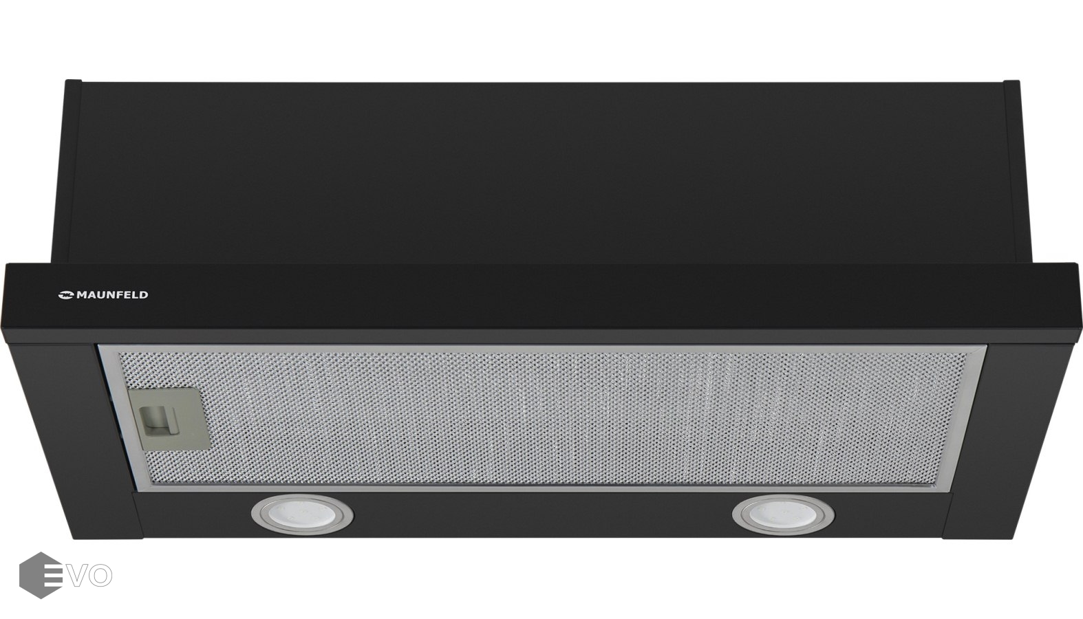 Корпус сделан из нержавеющей стали с высококачественным покрытием черного цвета. На основной рабочей и выдвижной панели находятся многослойные жироулавливающие фильтры, выполненные из алюминия. Они легко вынимаются и полностью разбираются, что сильно упрощает их чистку. Управление вытяжкой осуществляется двумя клавишными переключателями, скрытых в торце рабочей панели. Вы можете выбрать одну из 2-х скоростей вентилятора и включить освещение.