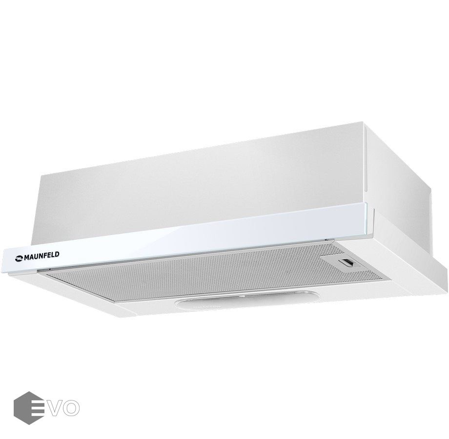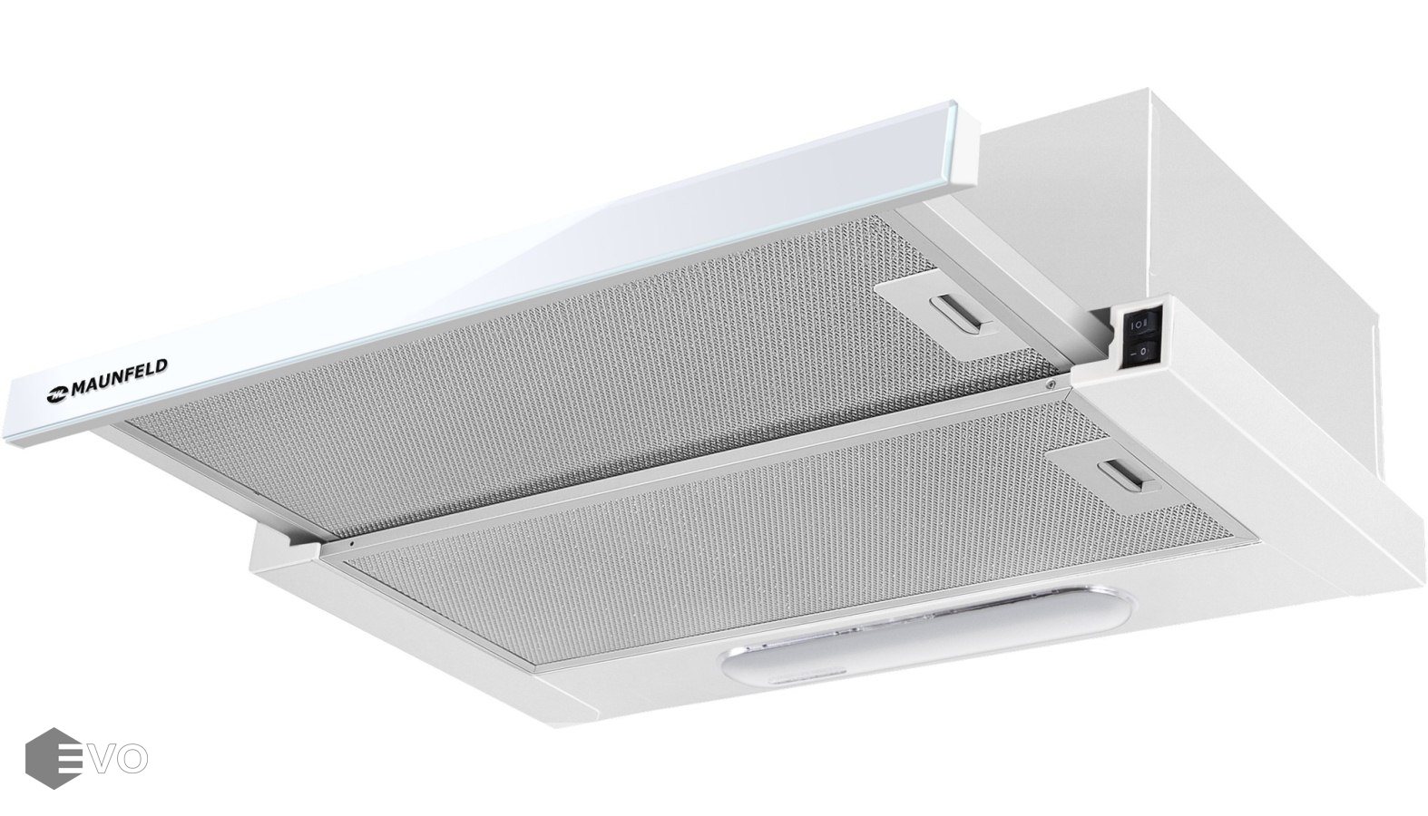 Выдвижная вытяжка MAUNFELD VS Light Glass 60 белое стекло – телескопическая кухонная вытяжка с шириной 60 см благодаря выдвижному козырьку может эффективно очищать загрязненный воздух на кухне до 20 кв.м. Модель встраивается в навесной шкаф над поверхностью плиты. Работает в 2-х режимах – отвода (при подключении к системе вентиляции) и рециркуляции (при использовании сменного угольного фильтра).