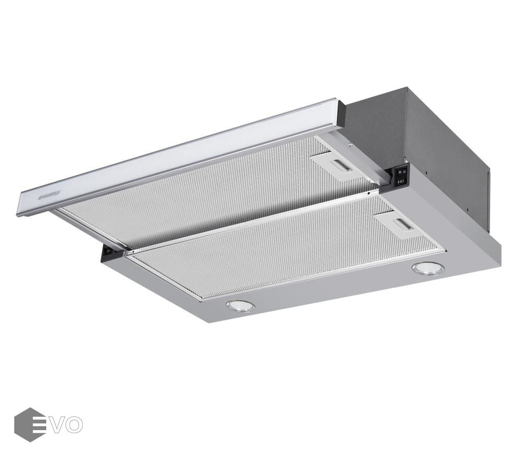 Фасад выдвижной панели выполнен из закаленного стекла белого цвета. При желании вы можете поменять его на фасад любого другого цвета из нашей линейки. Корпус сделан из матированной нержавеющей стали. Два многослойных жироулавливающих фильтра из алюминия легко вынимаются из вытяжки и полностью разбираются, что сильно упрощает их чистку. Управление вытяжкой осуществляется двумя клавишными переключателями, скрытых в торце рабочей панели, Вы можете выбрать одну из 3-х скоростей вентилятора и включить освещение.
