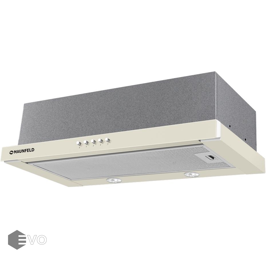 Выдвижная вытяжка MAUNFELD VSH 60 бежевый – телескопическая кухонная вытяжка с шириной 60 см благодаря выдвижному козырьку может эффективно очищать загрязненный воздух на кухне до 30 кв.м. Модель встраивается в навесной шкаф над поверхностью плиты. Работает в 2-х режимах – отвода (при подключении к системе вентиляции) и рециркуляции (при использовании сменного угольного фильтра).