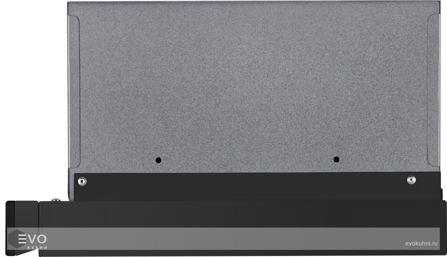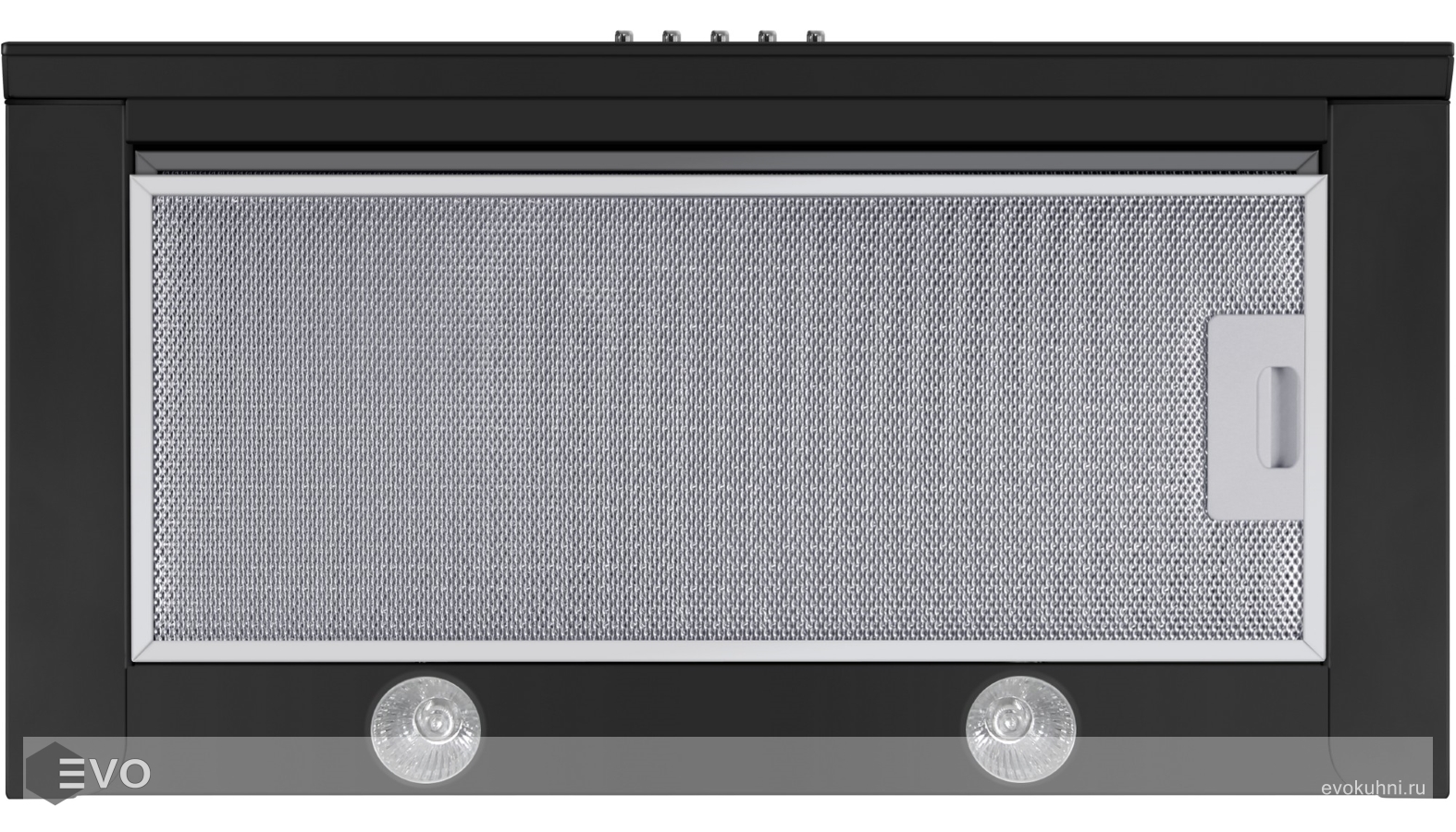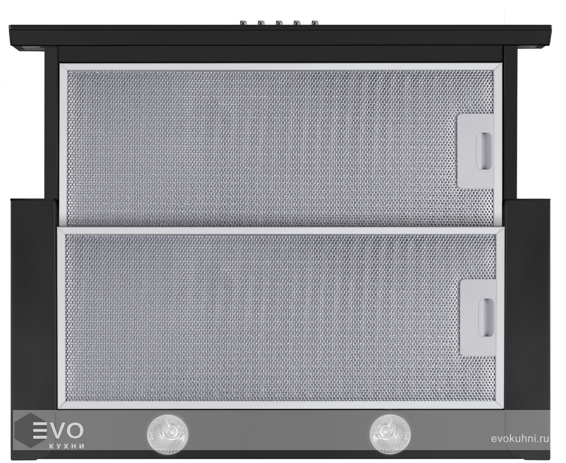 Корпус сделан из нержавеющей стали. Фронтальная и выдвижная панели выполнены в черном цвете. Два многослойных жироулавливающих фильтра из алюминия легко вынимаются из вытяжки и полностью разбираются, что сильно упрощает их чистку. Кнопочное управление располагается по центру фасада. Предусмотрено 3 скорости работы вентилятора и яркая подсветка рабочей поверхности.