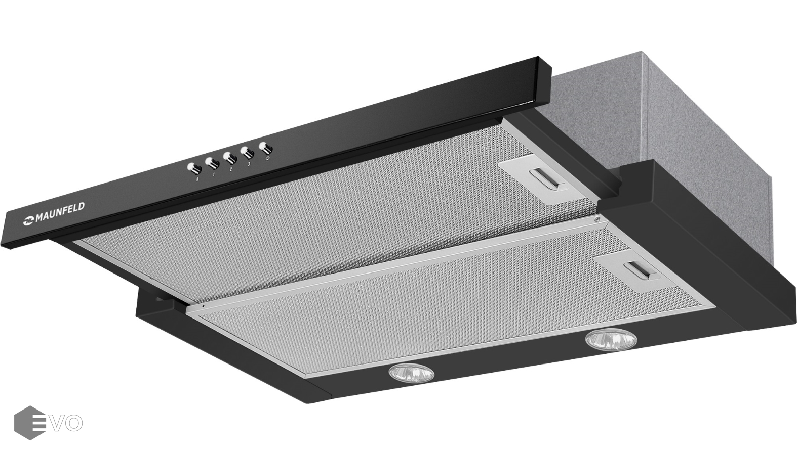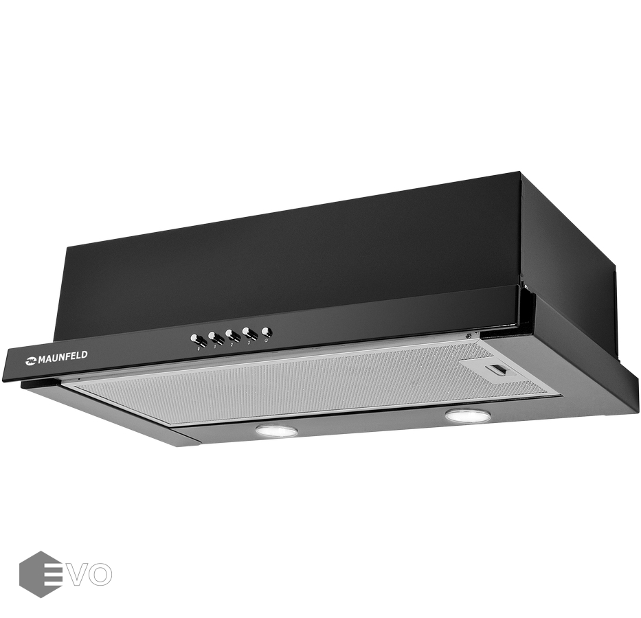 Выдвижная вытяжка MAUNFELD VSH 60 черный – телескопическая кухонная вытяжка с шириной 60 см благодаря выдвижному козырьку может эффективно очищать загрязненный воздух на кухне до 30 кв.м. Модель встраивается в навесной шкаф над поверхностью плиты. Работает в 2-х режимах – отвода (при подключении к системе вентиляции) и рециркуляции (при использовании сменного угольного фильтра).