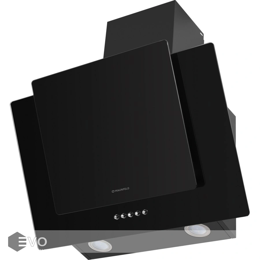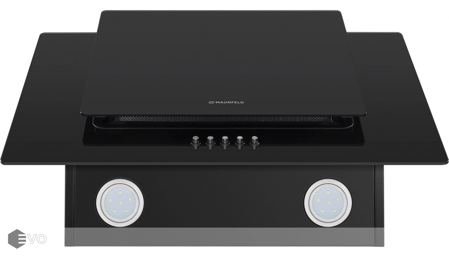 Наклонная вытяжка MAUNFELD Wind Push 50 черный – наклонная вытяжка шириной всего 50 см идеально впишется в интерьер большой кухни (до 25 кв.м). Монтируется на стену над варочной поверхностью и может работать в двух режимах: отвода (при подключении к системе общедомовой вентиляции) и рециркуляции (требуется использование сменного угольного фильтра). Кнопочное управление, расположенное на фронтальной панели, позволит выбрать одну из 3-х скоростей вентилятора и включить освещение (2 мощных LED-источника по 1 Вт).