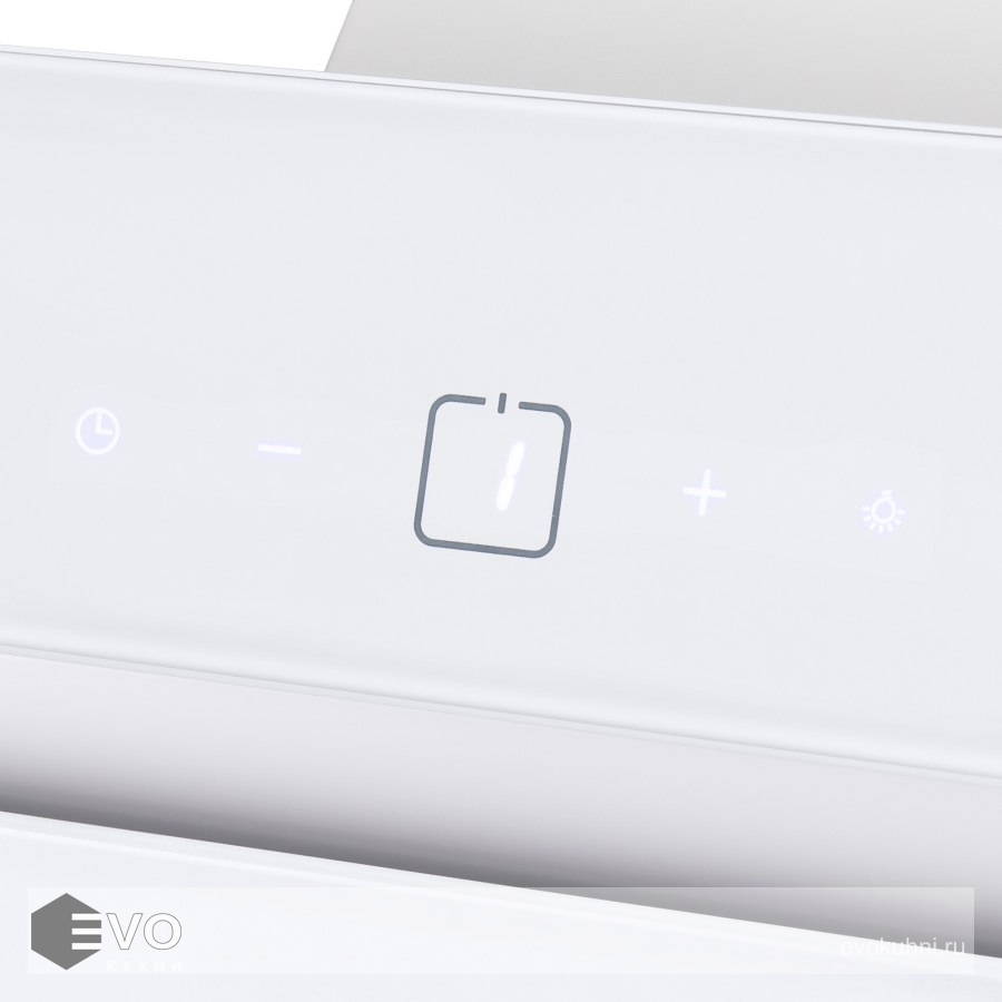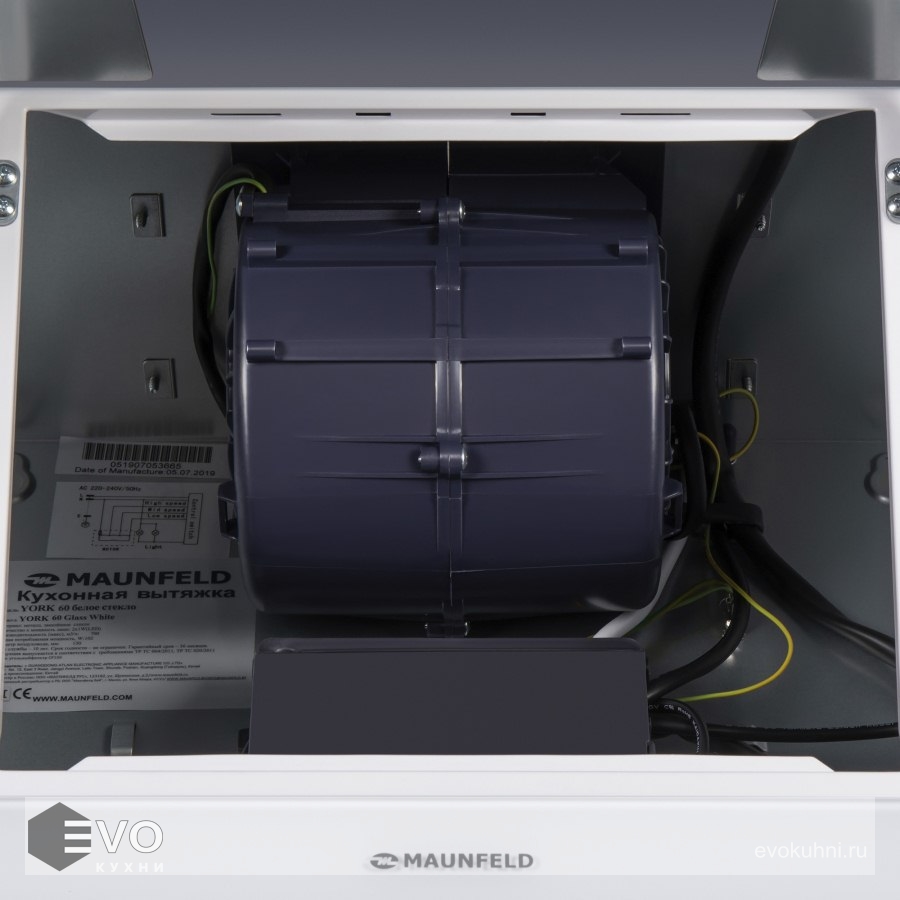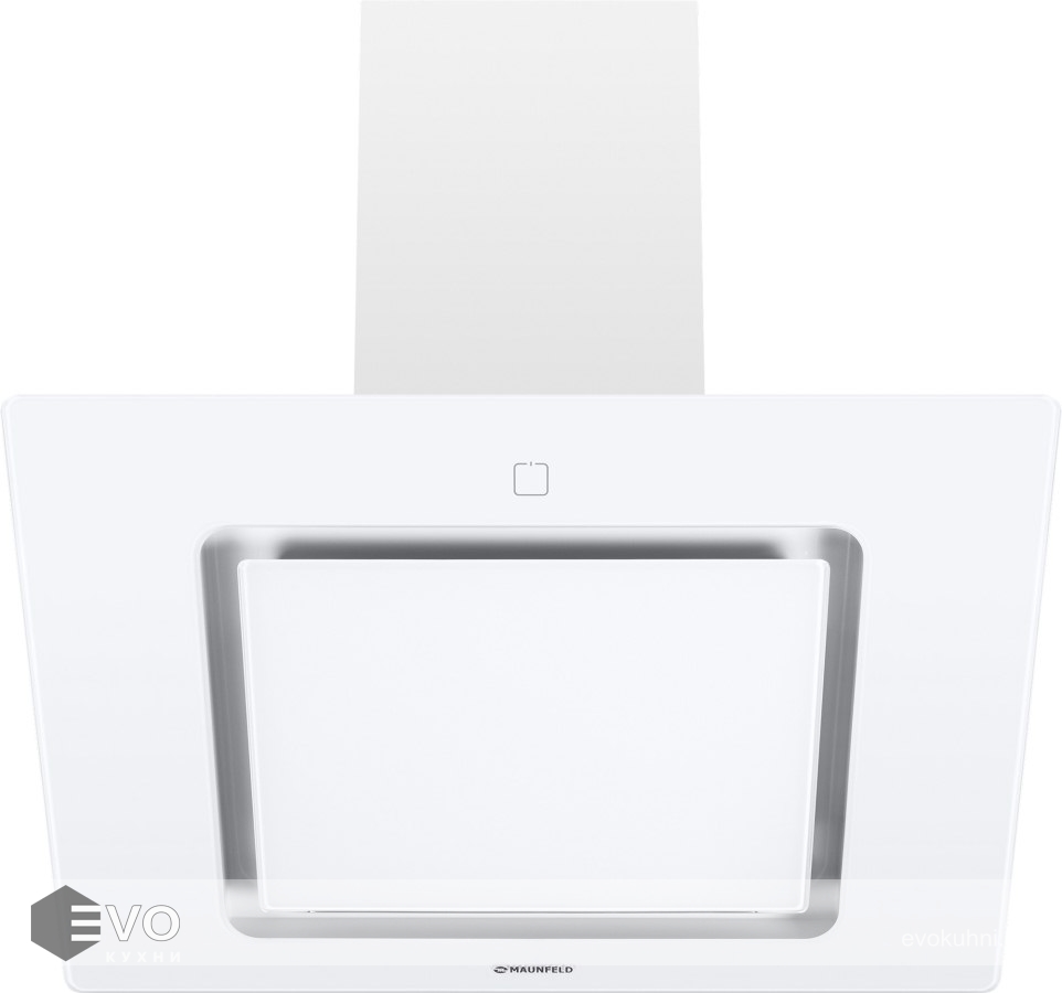 Наклонная вытяжка MAUNFELD York 60 белый – наклонная вытяжка шириной 60 см идеально впишется в интерьер большой кухни (до 25 кв.м). Монтируется на стену над варочной поверхностью и может работать в двух режимах: отвода (при подключении к системе общедомовой вентиляции) и рециркуляции (требуется использование сменного угольного фильтра). Сенсорный дисплей располагается над откидной панелью. Вы можете выбрать одну из 3-х скоростей, активировать таймер отключения вытяжки (на 5 мин) и включить свет.