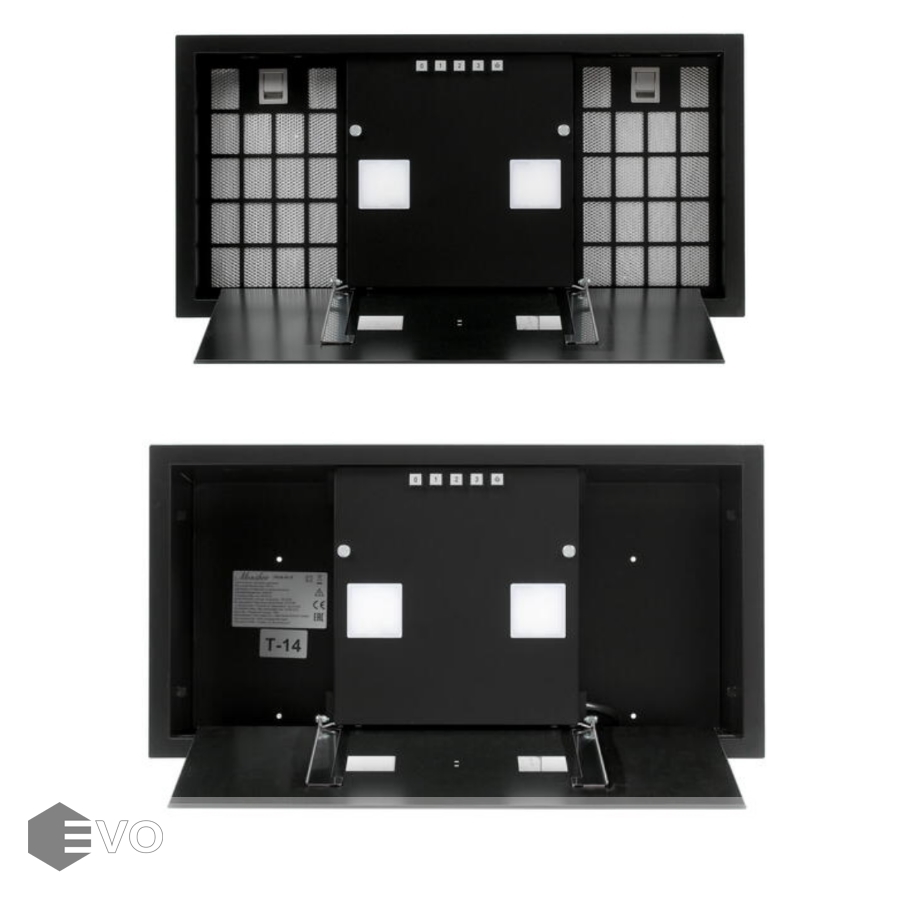 Антивозвратный клапан предотвращает проникновение воздуха через вентиляционное отверстие снаружи помещения. Металлический фильтр тщательно задерживает частицы жиры и существенно уменьшает их оседание на внутренних компонентах, продлевая таким образом срок службы Monsher INGA 60 B. Для повышения комфорта реализована светодиодная подсветка с двумя лампами по 2.5 Вт.