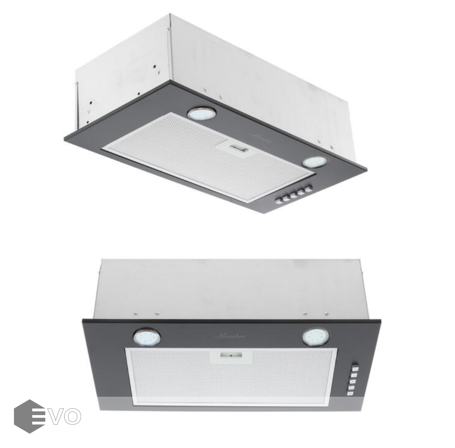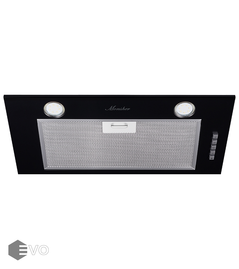Вытяжка полновстраиваемая Monsher INNA 55 B обладает черным корпусом, компактной конструкцией, которая позволяет спрятать установку в шкаф, и тем самым не будет занимать много пространства на кухне. Модель будет отличным вариантом для малогабаритных помещений, а ее производительность в 650 м³/ч легко и быстро будет избавлять от дыма во время готовки.
