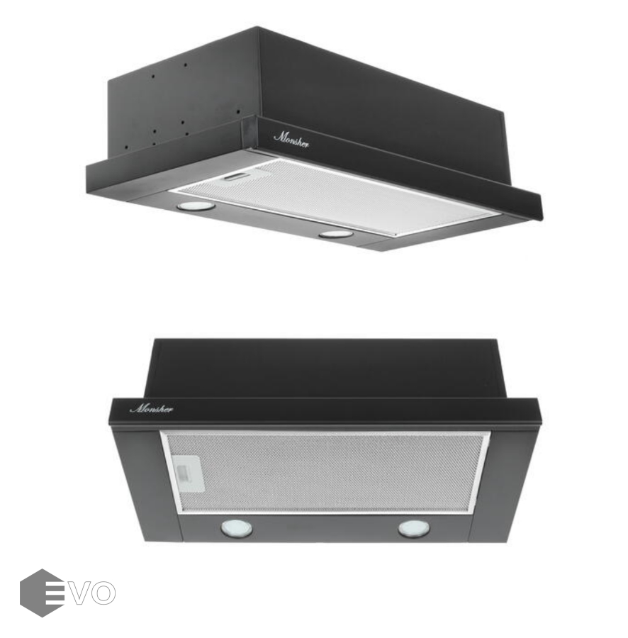Вытяжка телескопическая Monsher TELE II 60 B стала обладательницей 2 светодиодных ламп, благодаря которым вам не потребуется включать основной источник освещения в темное время. Если вы нуждаетесь в молниеносном удалении копоти и неприятных запахов, попросту воспользуйтесь режимом отвода.