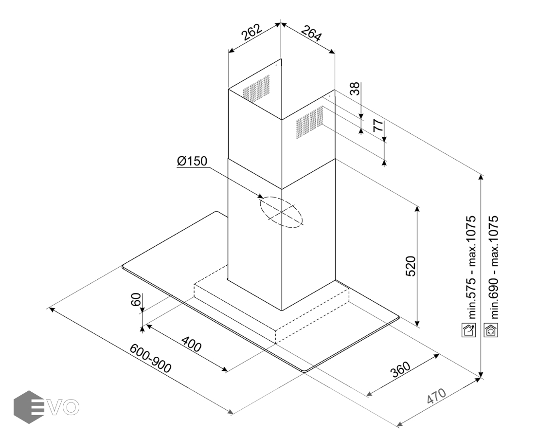 - Высота, мм: 575-1075