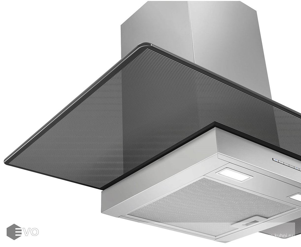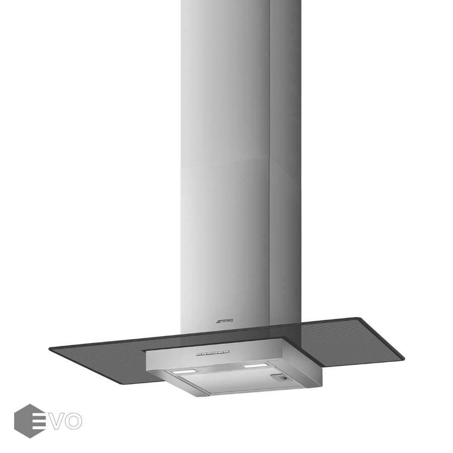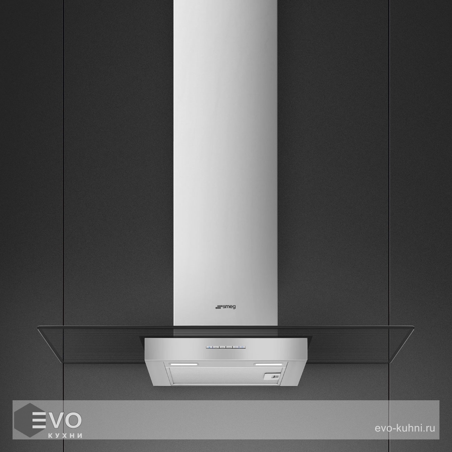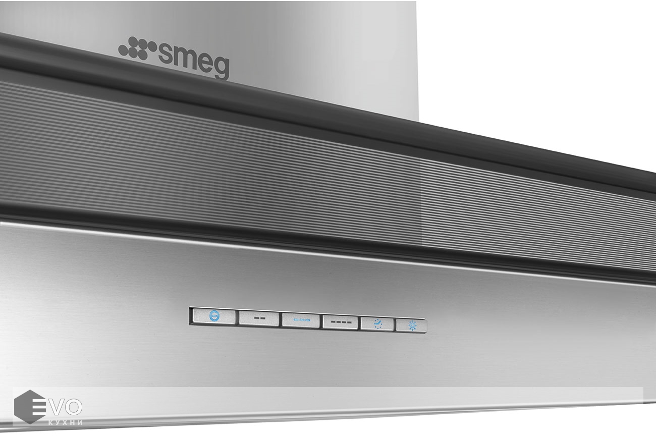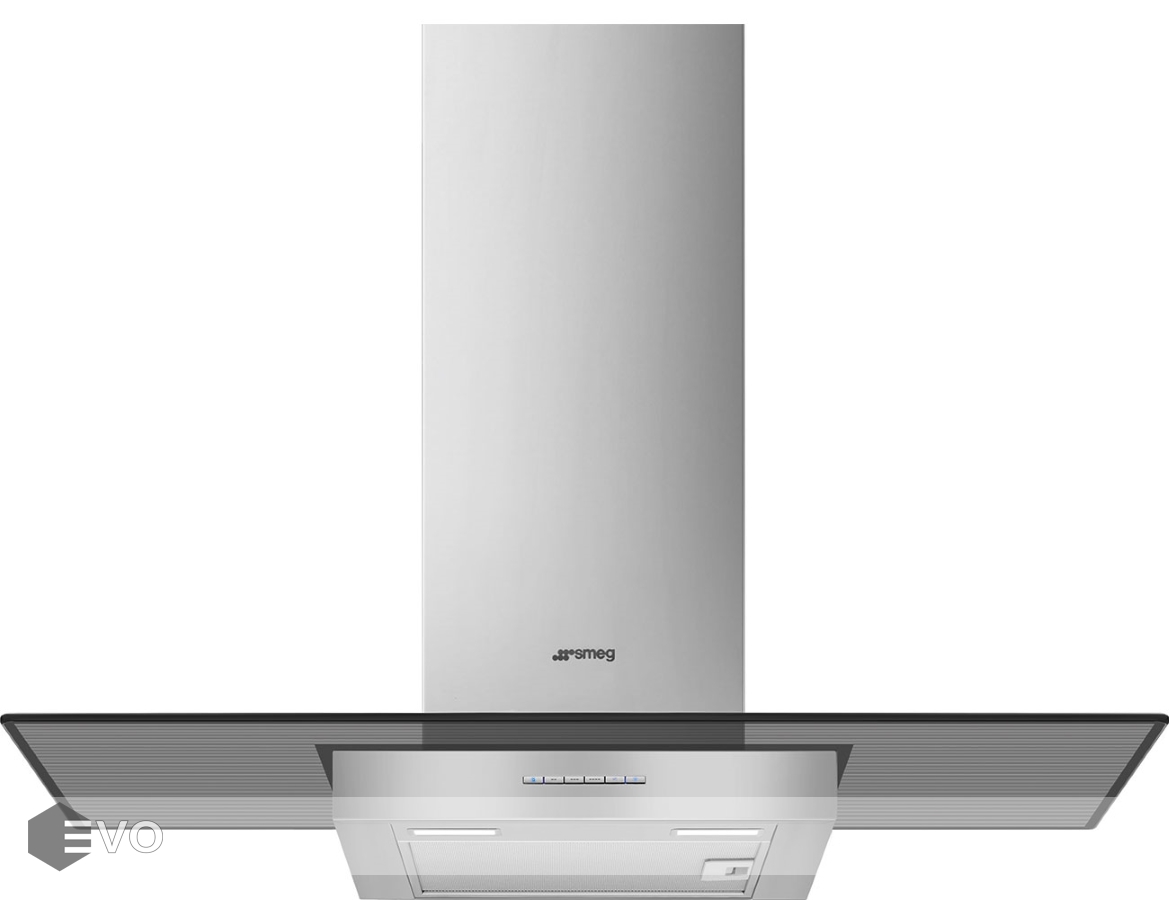 Т-образная вытяжка Smeg KBT900VE – настенная вытяжка в цвете нержавеющая сталь, имеет электронное управление с помощью кнопок и LED-подсветку двумя лампами. Вытяжка работает в режимах отвода и циркуляции, поэтому загрязнения удаляются из комнаты и перенаправляются в воздуховод, при этом можно очистить воздух и использовать повторно за счет возвращения его в помещение.
