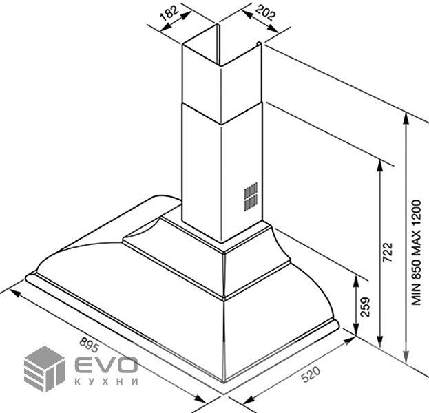 - Высота установки над газовыми варочными поверхностями, мм: 750