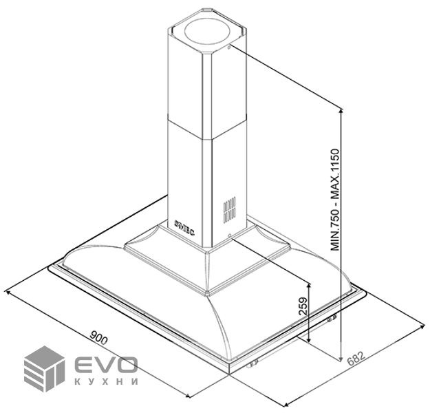 - Высота установки над газовыми варочными поверхностями, мм: 750