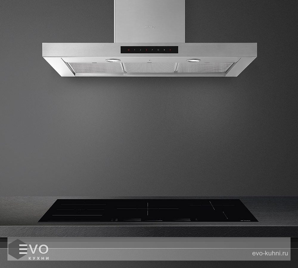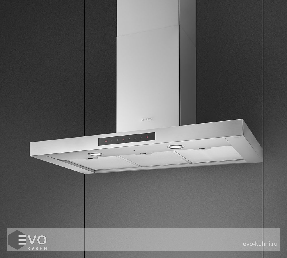 Т-образная вытяжка Smeg KICT90BL – настенная вытяжка в цвете нержавеющая сталь, имеет электронное управление с помощью кнопок и LED-подсветку двумя лампами. Предусмотрен интенсивный режим, когда вытяжка работает на максимальной скорости, чтобы ускорить удаление даже самых стойких запахов.