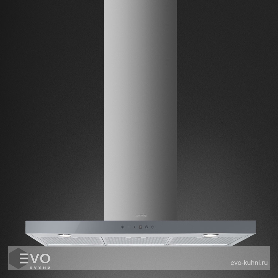 Т-образная вытяжка Smeg KS905BXE2 – настенная вытяжка шириной 90 см., имеет управление Touch Control и LED дисплей с белыми индикаторами. Предусмотрено 3 скорости и интенсивный режим, позволяющий включить устройство на максимальную мощность, чтобы ускорить удаление запахов.