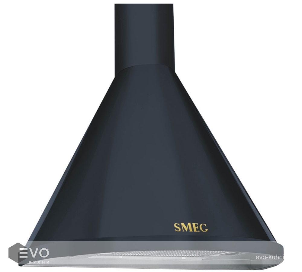 Купольная вытяжка Smeg KSE86AOE – настенная вытяжка цвета «антрацит». Техника быстро и безупречно очистит внутреннее пространство кухни от запахов благодаря режимам отвода или циркуляции. Купольная модель выделяется благодаря ретро-дизайну, корпусу из нержавеющей стали и стильной латунной окантовке.