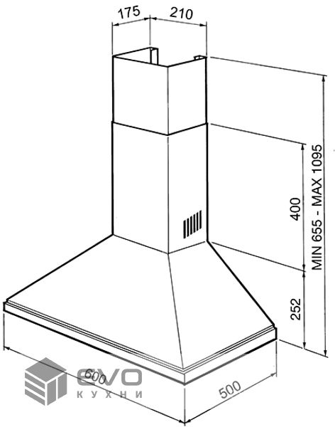 - Высота установки над электрическими варочными поверхностями, мм: 650