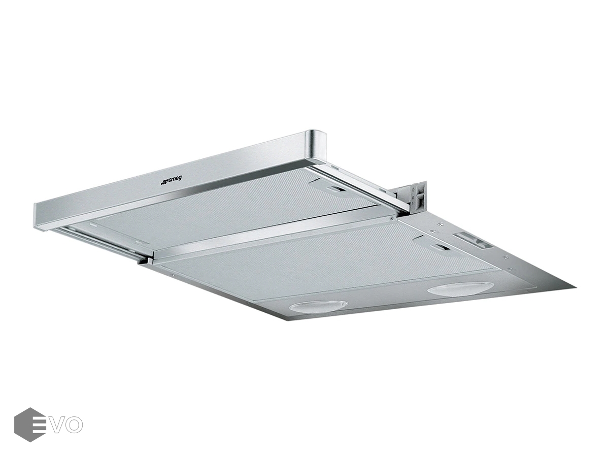 Выдвижная вытяжка Smeg KSET61E2 – вытяжка встраивается в подвесной шкаф и освежает воздух на кухне. Модель оснащена удобным выдвижным экраном, увеличивающим площадь забора загрязненного воздуха. Для работы в режиме отвода воздуха за пределы помещения требуется присоединения к вентиляционной системе при помощи воздуховода диаметром 120 мм.