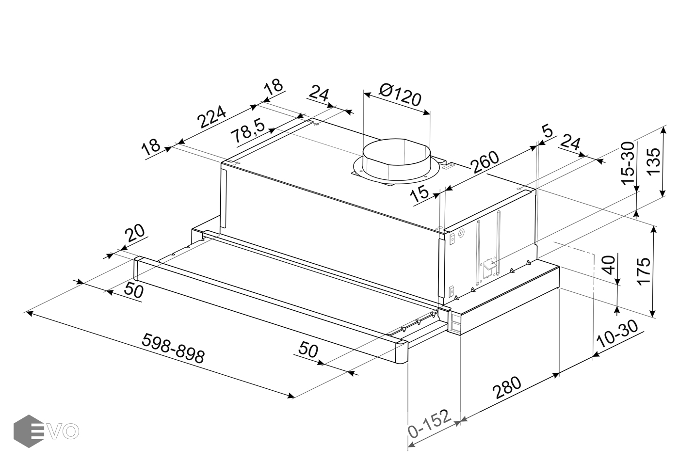 | Тип вытяжки : | Встраиваемая (в шкаф) |