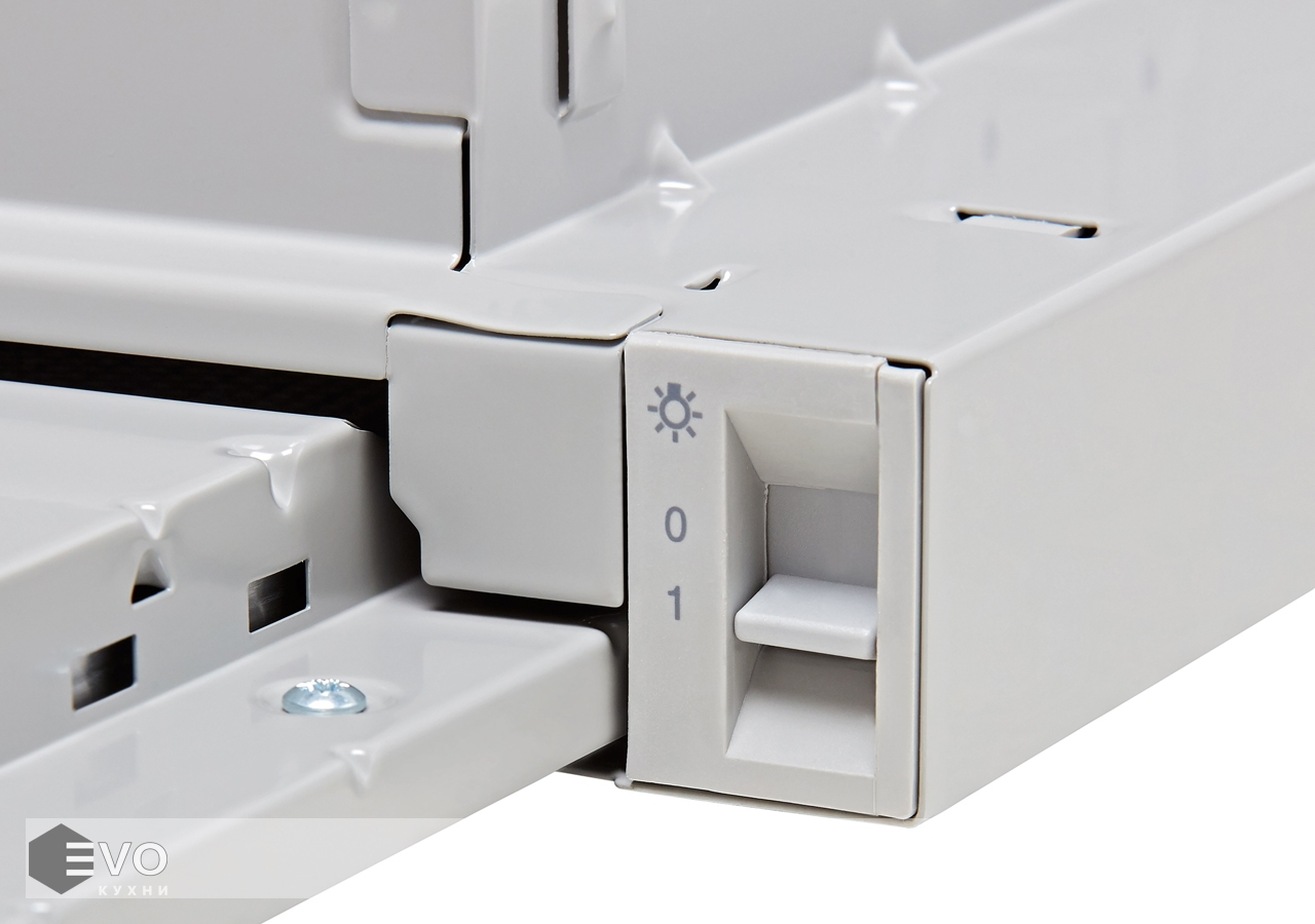 При помощи слайдерного управления можно выбрать одну из трех скоростей работы. Жироулавливающие фильтры изготавливаются из алюминия и снимаются для очистки в посудомоечной машине или под струей воды. Имеется возможность установка сменного угольного фильтра для устранения неприятных запахов.