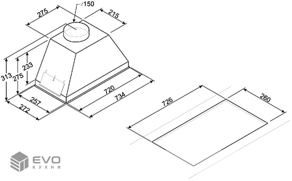 Тип вытяжки : | Встраиваемая (в шкаф) |