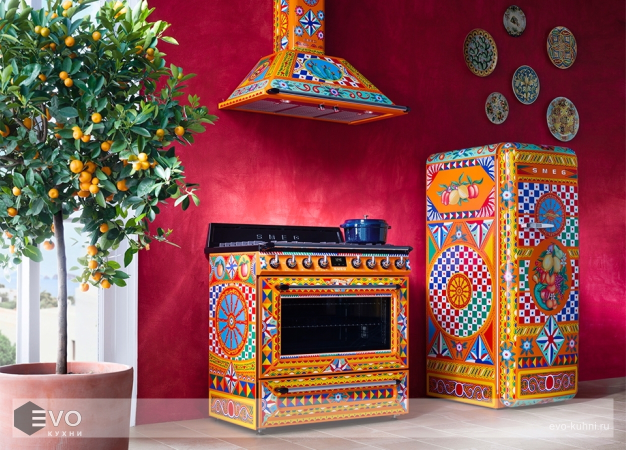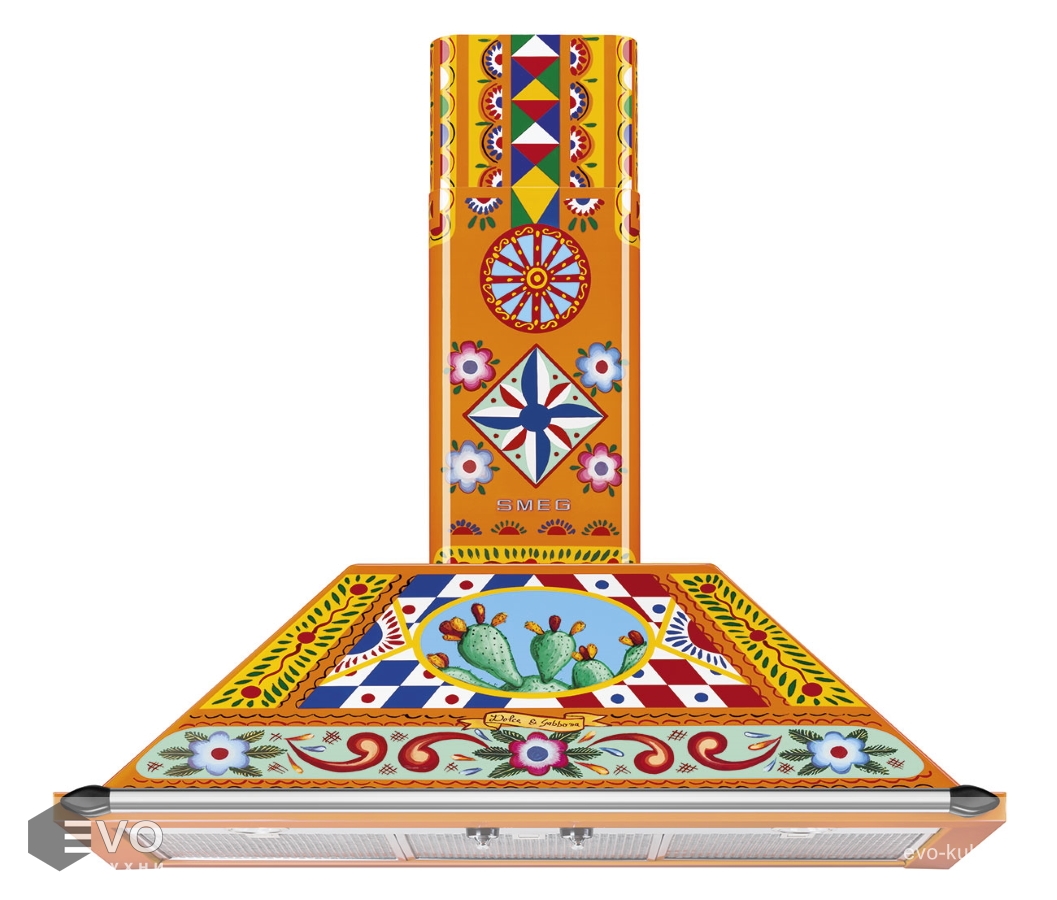 Купольная вытяжка Smeg KT90DGC – вытяжка украсит любую кухню яркими, сочными красками, выполнена в стиле одного из самых узнаваемых фольклорных символов Сицилии. Теплый, насыщенный свет от галогенных лампочек круглогодично будет дарить ощущение тепла и уюта. Более удобной и комфортной сделают работу с вытяжкой электронное управление и наличие 3 скоростей.